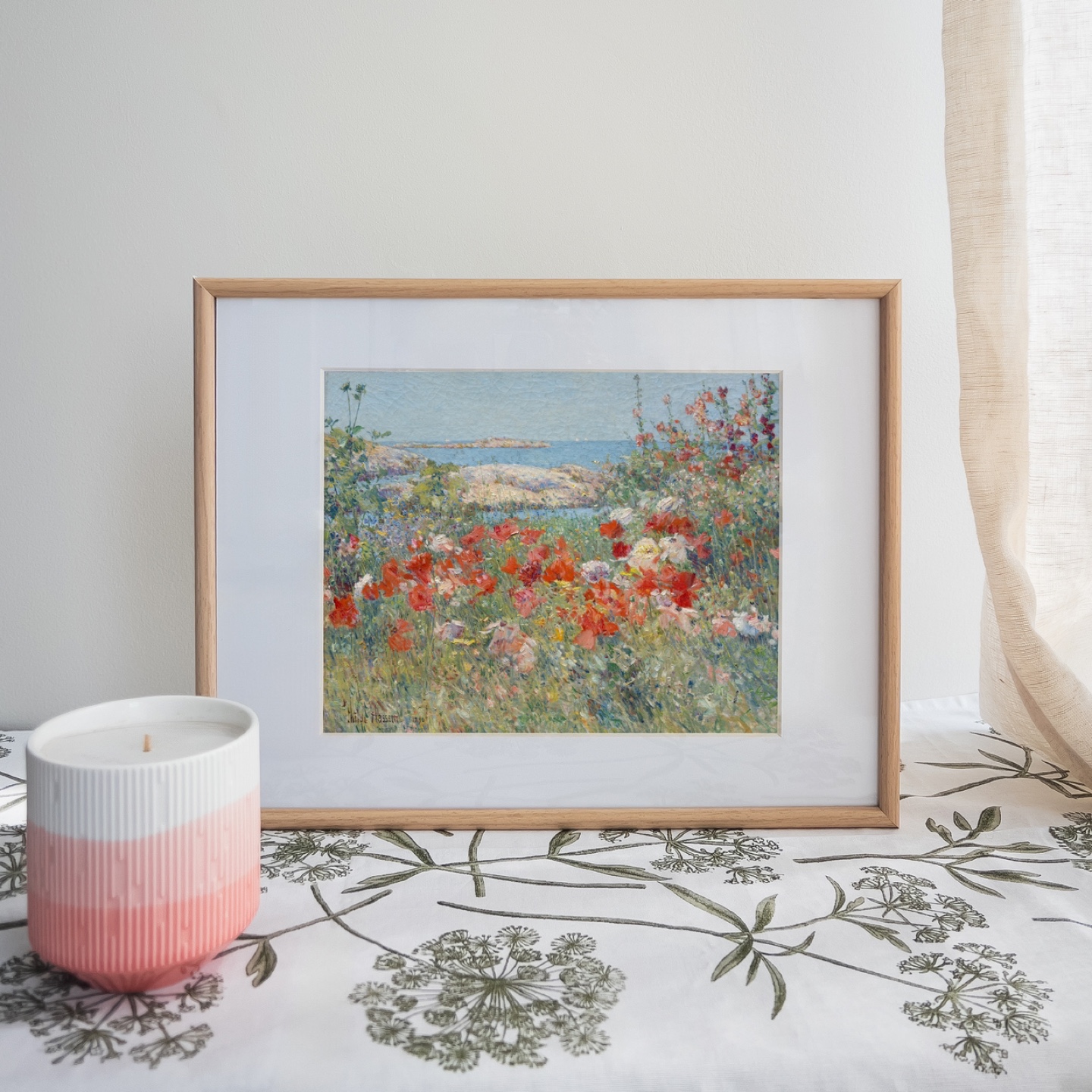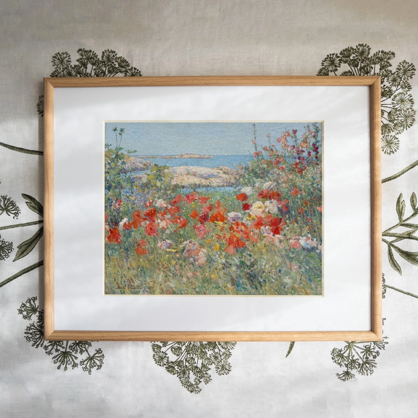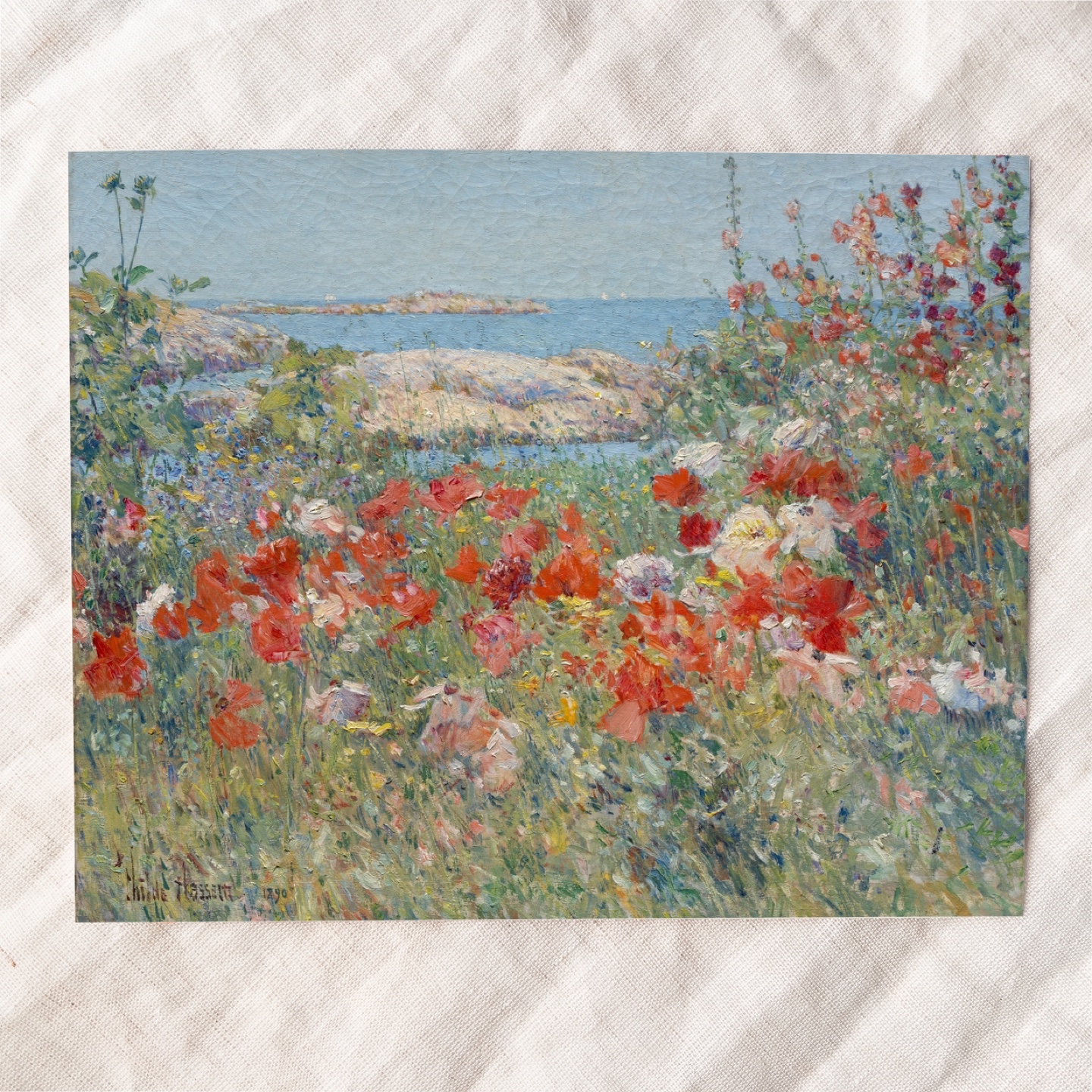 Originally painted on Appledore Island, near New Hampshire, by the Impressionist artist Childe Hassam, 1980.