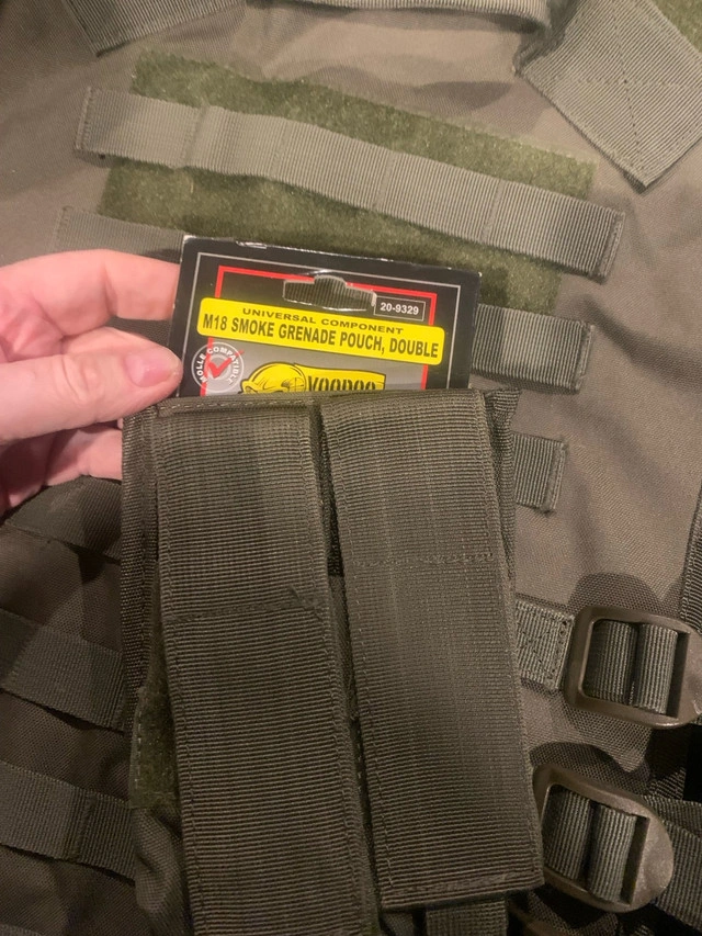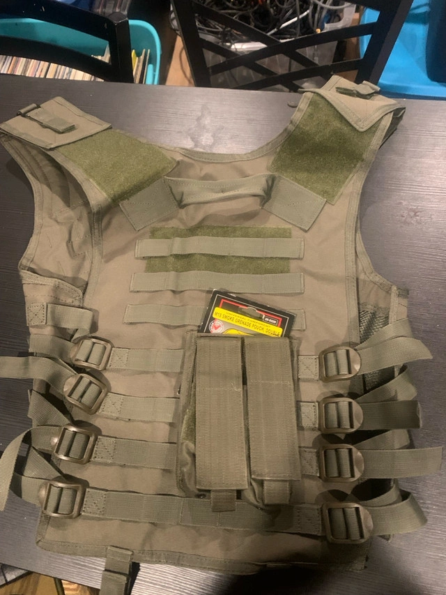76I'm selling a Voodoo Tactical Vest in used-good condition, designed for tactical use with MOLLE webbing for attaching various pouches and accessories. The vest is olive drab in colour and features adjustable straps for a customizable fit. It's perfect for airsoft, paintball, or tactical training. Key features include: * Durable construction * MOLLE webbing * Adjustable straps * Olive drab colour I'm asking $70, which is a fair price considering its condition and utility. If the ad's up, it's still up for grabs!