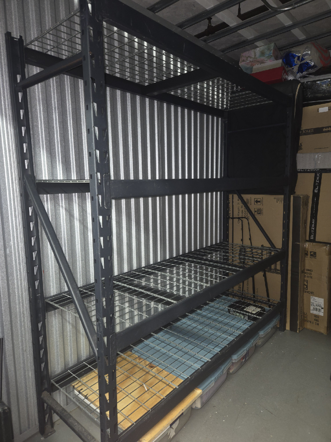 Selling a sturdy black metal shelving unit made by Husky. It's in good condition and ready to help organize your space! Perfect for a garage, storage unit, or workshop