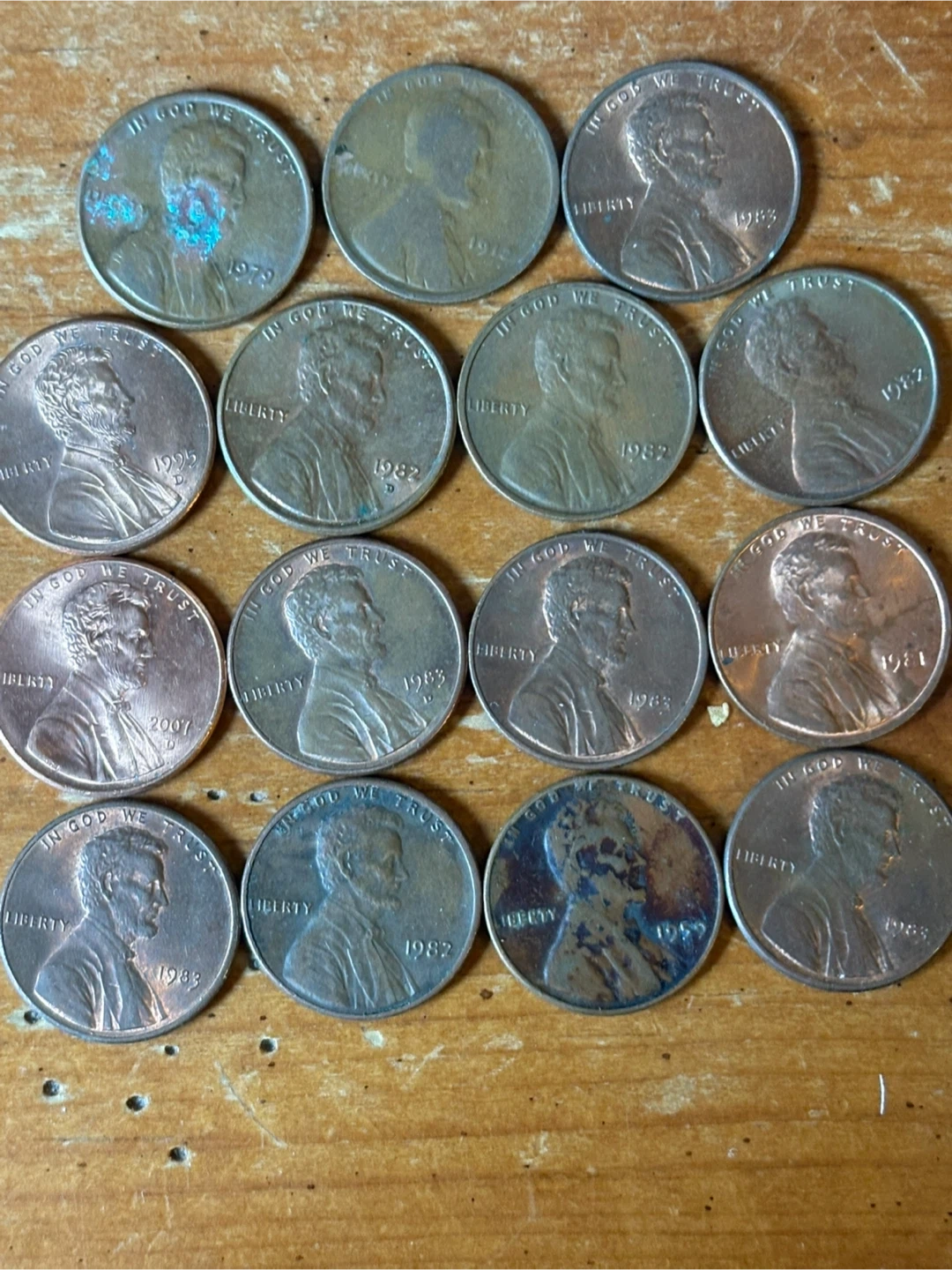 I have a collection of vintage US pennies for sale! The years range from 1979 to 2007. They are in used condition, with some wear and tear visible. Great for collectors or anyone interested in a piece of history! There’s a 1912 a couple 1982s with no mint mark 1982D 1995D 1959 1981 blow up the pictures you could see for yourself
