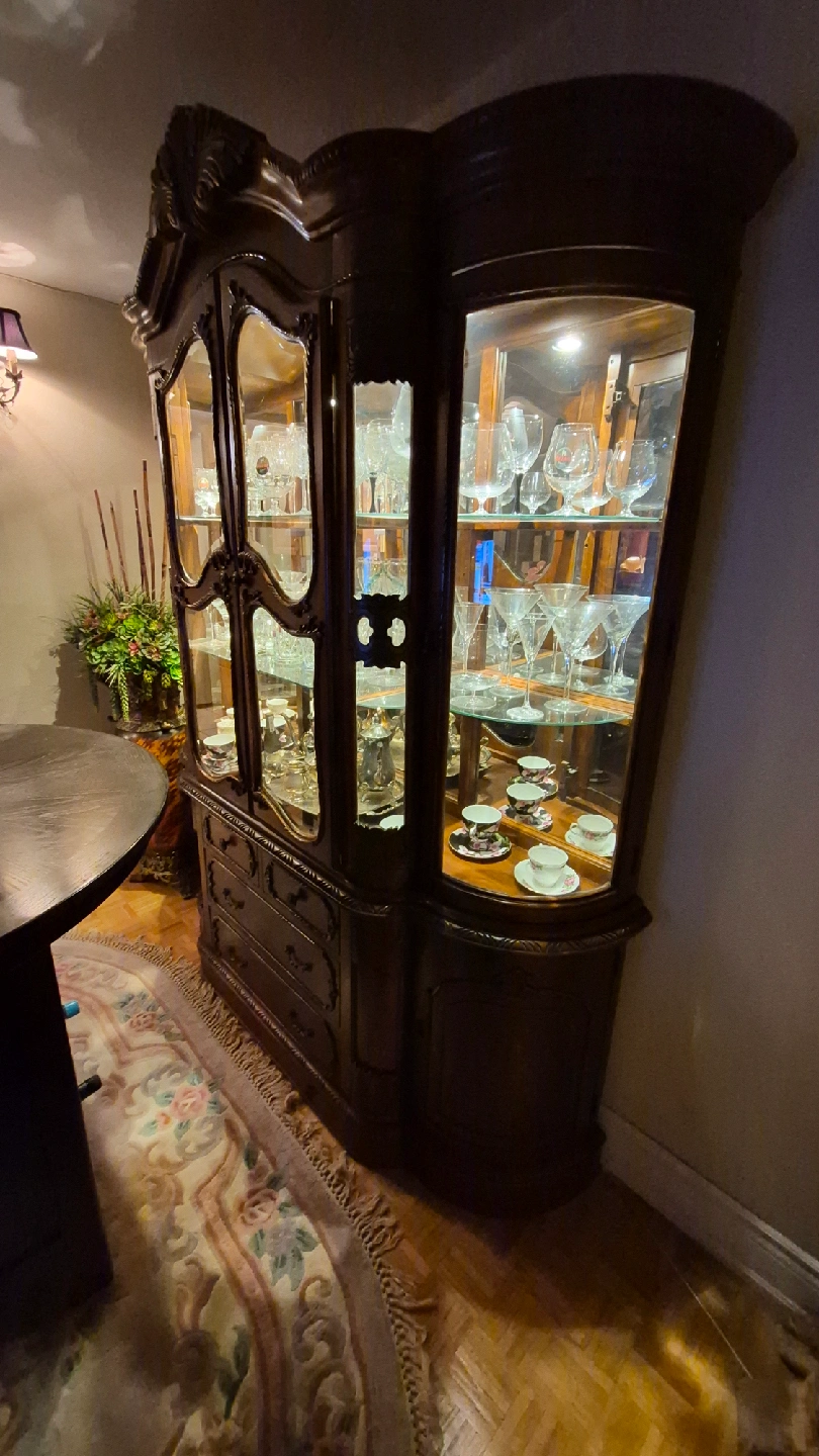 Here's a beautiful antique wooden display cabinet. It's a great piece for showcasing your favourite items and adding a touch of elegance to any room. It's in great shape and ready for a new home! 69" x 90" x 19" deep 2 pcs