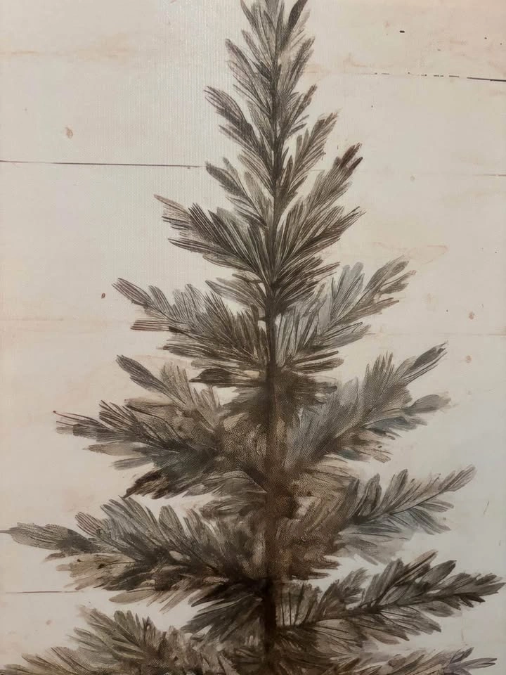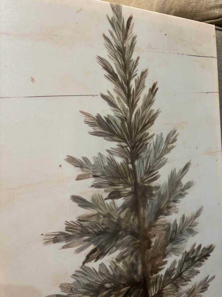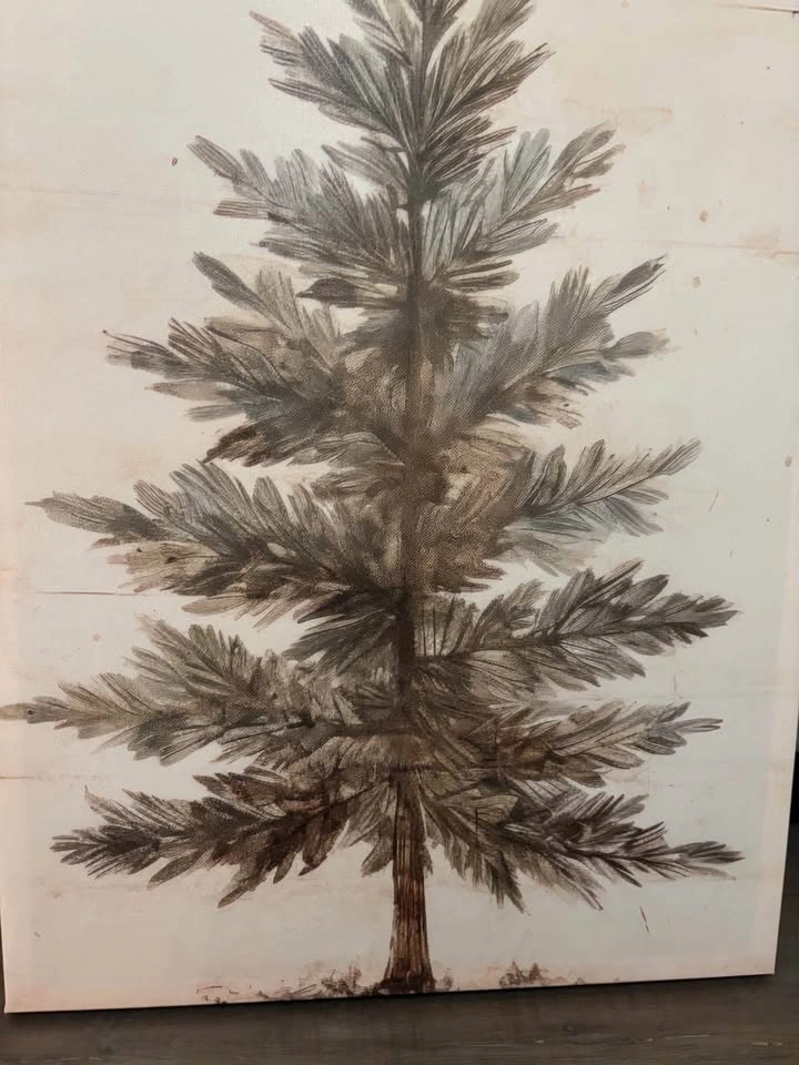 Rustic evergreen tree canvas with neutral background. 23.6”X15.7”X1.5”. Pickup in Bowmanville near Middle Rd and Northglen Blvd.
