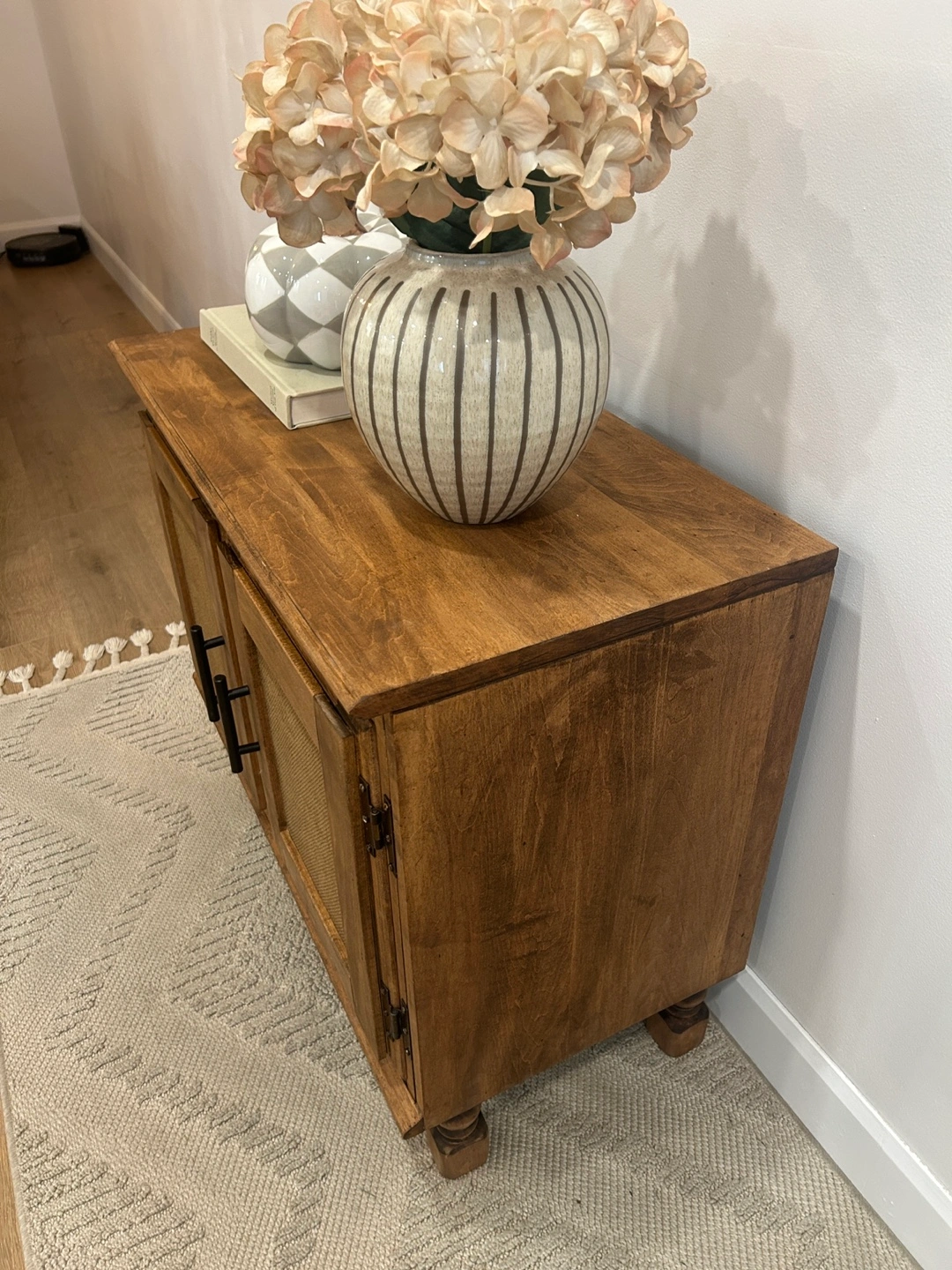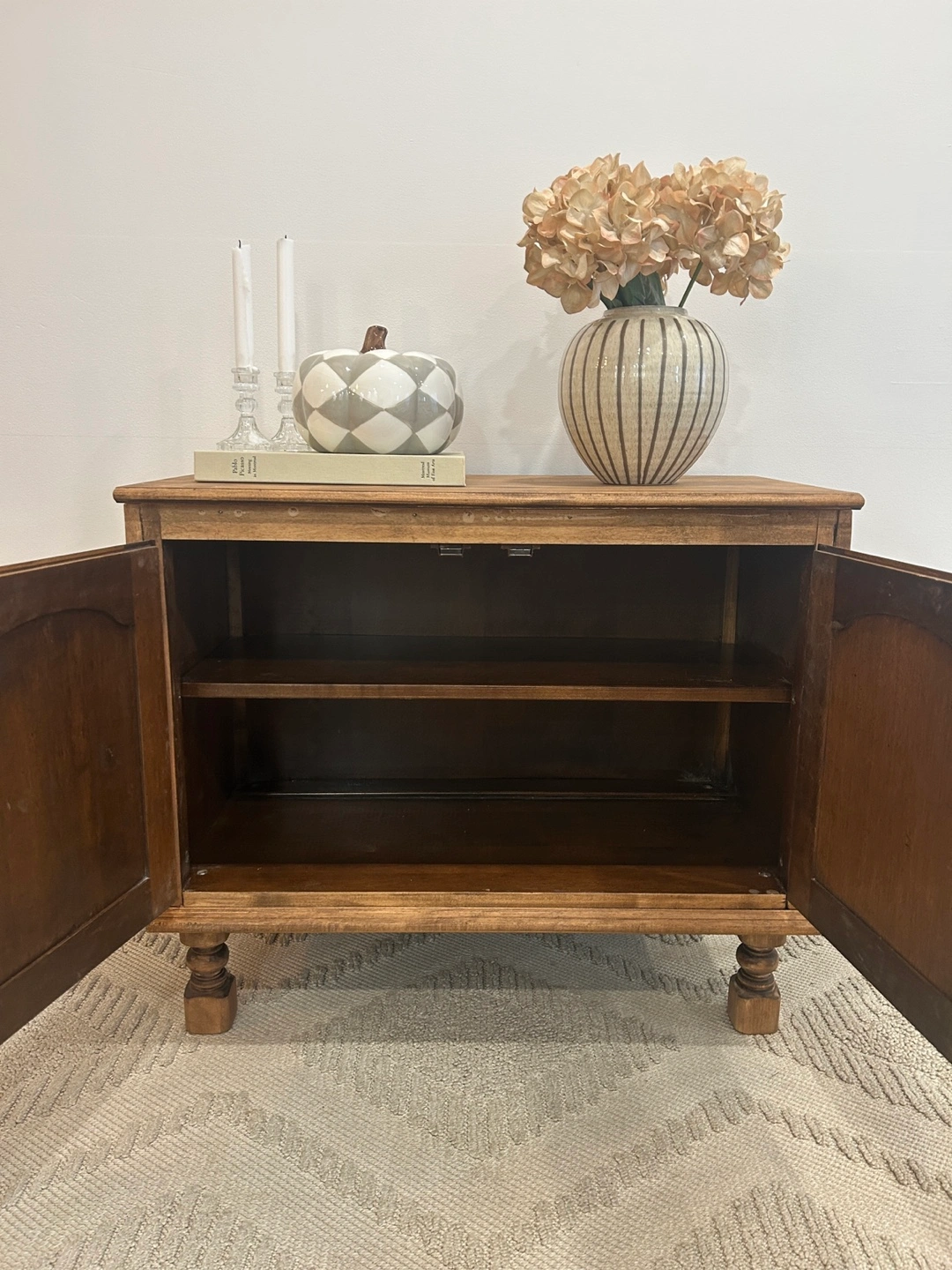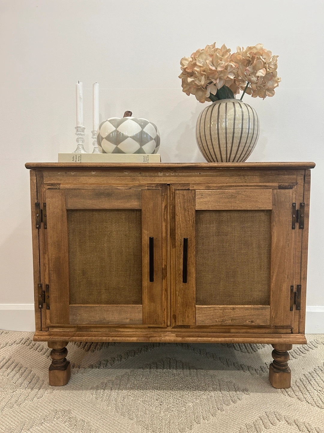 This is a lovely set of rustic wood cabinets, perfect as side tables or for extra storage. It features a warm wood tone and classic design with two doors and interior shelving. It's in great condition and ready to add some charm to your space!