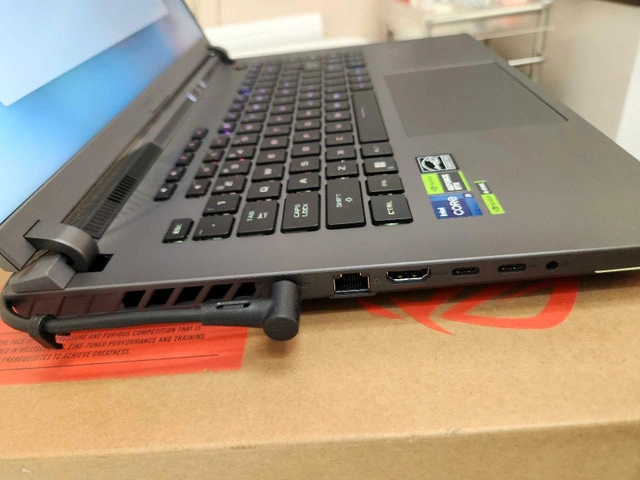 26TOP PERFORMANCE LAPTOP. Asus Build Quality. Super Quiet. ORIGINAL VALUE: $2800+ with tax. 2560x1600 pixels WQXGA 240HZ Panel (crazy in a laptop) 2TB PCIE-4 2xSSD ASUS ROG Strix G16 16" Gaming Laptop - Eclipse Grey (Intel Core i9-HX/2TB SSD/16GB RAM/GeForce RTX 4060) Upgradeable up to 64gb DDR5 (32gbx2) Ram. Very Good Absolutely Clean condition. and Perfect Performance. Comes in original packaging and box/accessories. ------------- SPECS: 13th Generation Intel Core i9-13980HX processor and 16GB DDR5 RAM guarantee super-smooth and fast performance for gaming, multi-tasking and video editing 2TB solid state drive offers enough space to accommodate your storage needs Dedicated NVIDIA GeForce RTX 4060 laptop GPU and 8GB video let you enjoy butter smooth videos during gaming and fast-paced scenes 16-inch ROG Nebula display with 2560 x 1600 (WQXGA) resolution, 16:10 aspect ratio, 240Hz refresh rate and 3ms response time guarantee extraordinary picture quality Wi-Fi 6E(802.11ax), 10/100/1000 Ethernet Port and Bluetooth 5.2 provide an array of options for connectivity and networking 4S1P, 4-cell Li-ion battery with 90 Wh capacity allows you to enjoy gaming for hours One Thunderbolt 4 support DisplayPort, 1 x USB 3.2 Gen 2 Type-C support DisplayPort / power delivery / G-SYNC, 2 x USB 3.2 Gen 2 Type-A, 1 x RJ45 LAN port, 1 x HDMI 2.1 FRL and 1 x 3.5 mm Combo Audio Jack offer plenty of options for connecting peripheral devices ROG Intelligent Cooling technology and Conductonaut Extreme liquid metal keep the internal components cool for longer session MUX switch enhances gaming performance by directly harnessing the power of dGPU Advanced Optimus automatically selects between dGPU and iGPU based on the different parameters Sci-fi style and graffiti type accents with dot matrix design and typographic details make this laptop so cool and attractive Preinstalled with Windows 11 Home operating system that features improved performance, security and stability This device comes with Game Pass Ultimate 3 month. Experience a huge variety of PC games from every genre, and with new games added all the time, there’s something for everyone to play