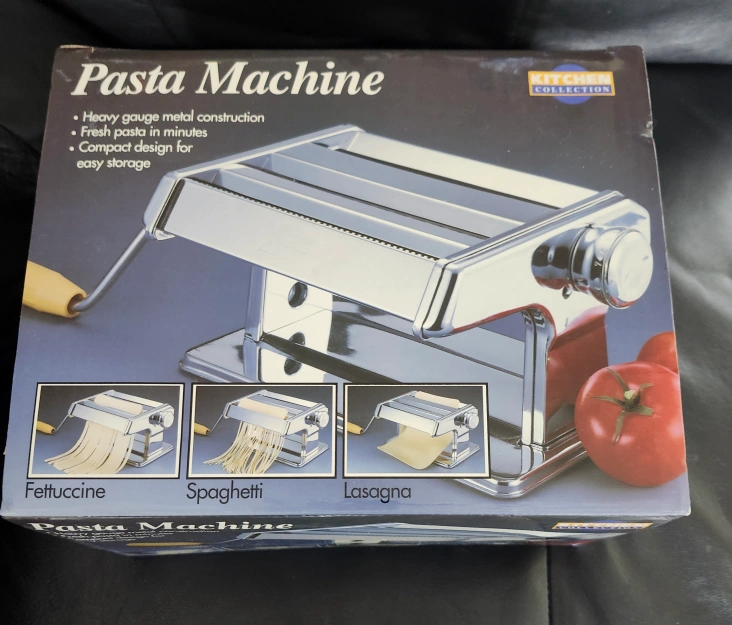 162Selling a Kitchen Collection Pasta Machine. It's in great condition and comes with the original box! The machine is made of heavy gauge metal and has a compact design for easy storage. Make fresh pasta in minutes for fettuccine, spaghetti, or lasagna! ( Brand Shule) New Never Used!