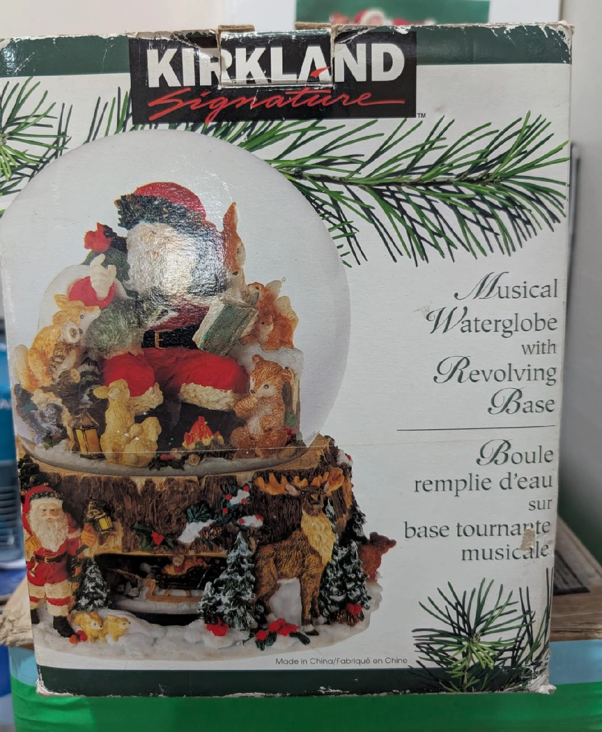 Selling a Kirkland Signature musical waterglobe with a revolving base. The glass ball is 150 mm in diameter. Comes in the original box. Used but not like new.