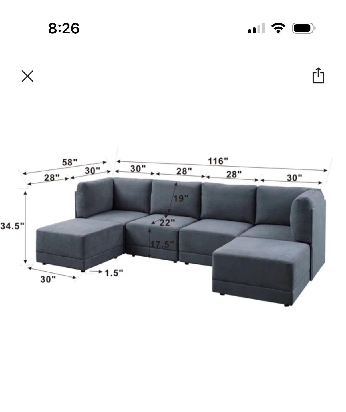 Selling a modular sectional sofa in gray! This couch is super versatile and can be arranged in different configurations to fit your space.