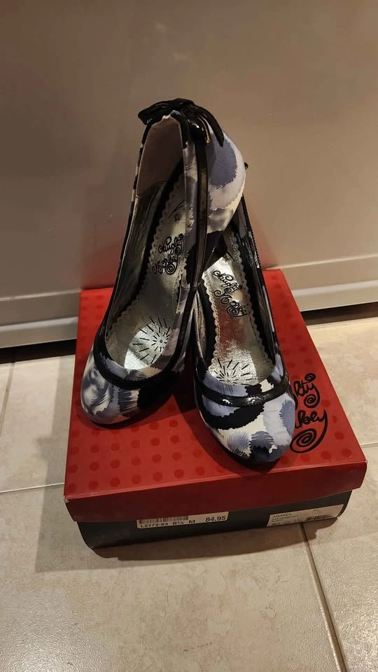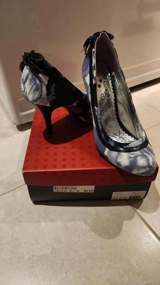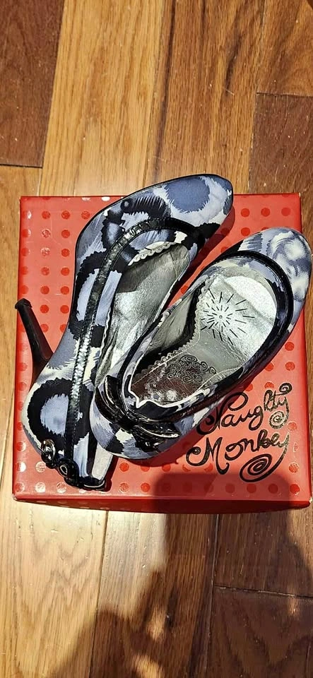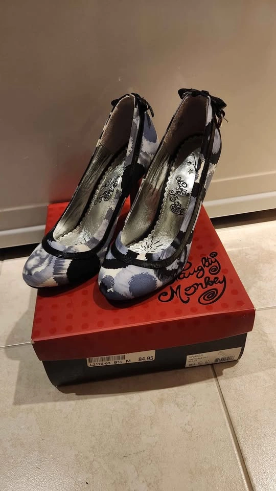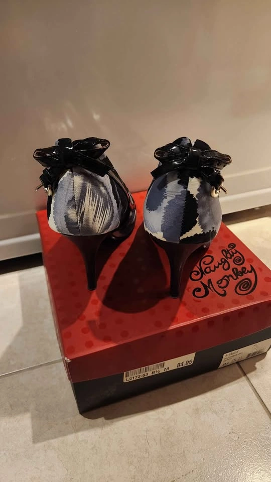 Naughty Monkey "Awaken" 4 inch heels with gorgeous abstract design. Blue/grey/black/white. Worn once. Size 8.5. Medium width.