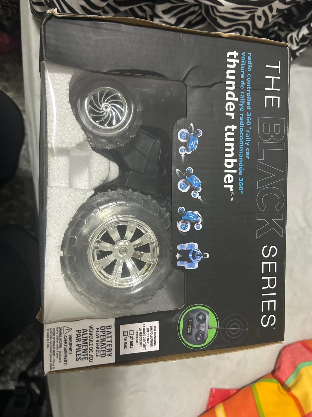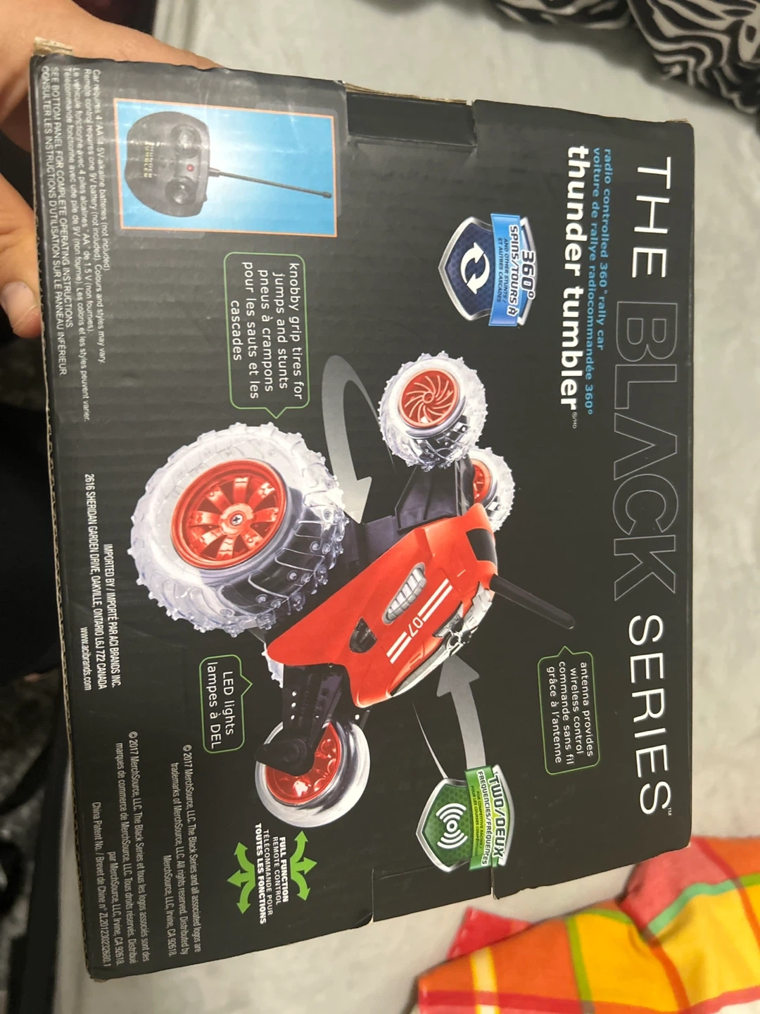 Selling a brand new The Black Series Thunder Tumbler radio controlled 360° rally car! It's still in the box and ready for some action. This RC car features: - Radio controlled 360° rally car - Spinning stunt vehicle with LED lights