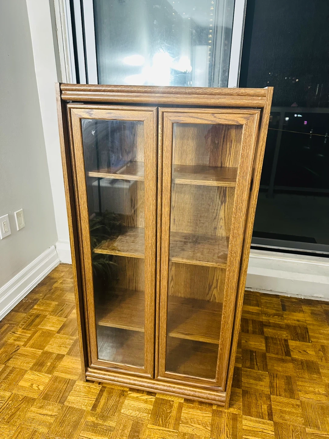 Selling a lovely wooden display cabinet! It features glass doors, perfect for showcasing your favourite items. The cabinet is in great condition and ready for a new home. It's a stylish and functional piece that would look great in any living room, dining room, or office space.