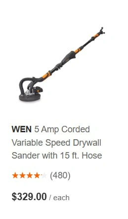 Looking to sell a WEN 5 Amp Corded Variable Speed Drywall Sander. It comes with a 15 ft hose. The sander features a 360° pivoting head and an 8.5" head. It also has a variable speed motor that runs at 600-1500 RPM. Originally bought for $329.00 before tax