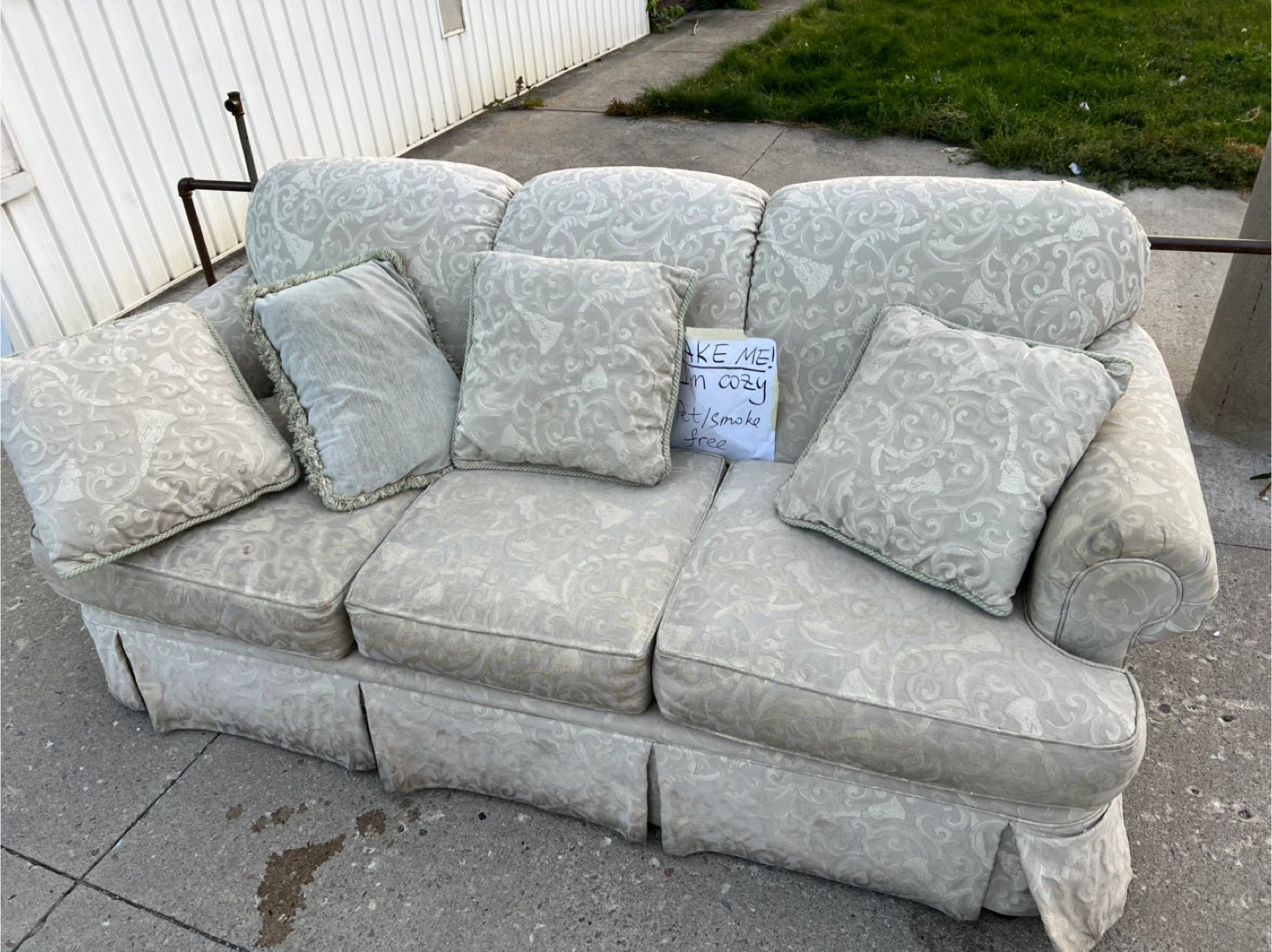 1 / 11 / 1Buy & SellCozy 3-seater Sofa with PillowsCozy 3-seater Sofa with Pillows$45comfy 3-seater sofa a new home! It comes with the pillows shown in the picture. Perfect for adding a touch of coziness to your living spaceConditionOkayWHERE TO MEETCheck LocationView MapSELLERverifiedAlWoodbine Heights39531 reviews4 chats·0 favorites·209 viewsSEND CHAT TO SELLERHi Al! I’m interested in your listing.Hi Al! I’m interested in your listing.Get the Karrot app to chatSign In to chat
