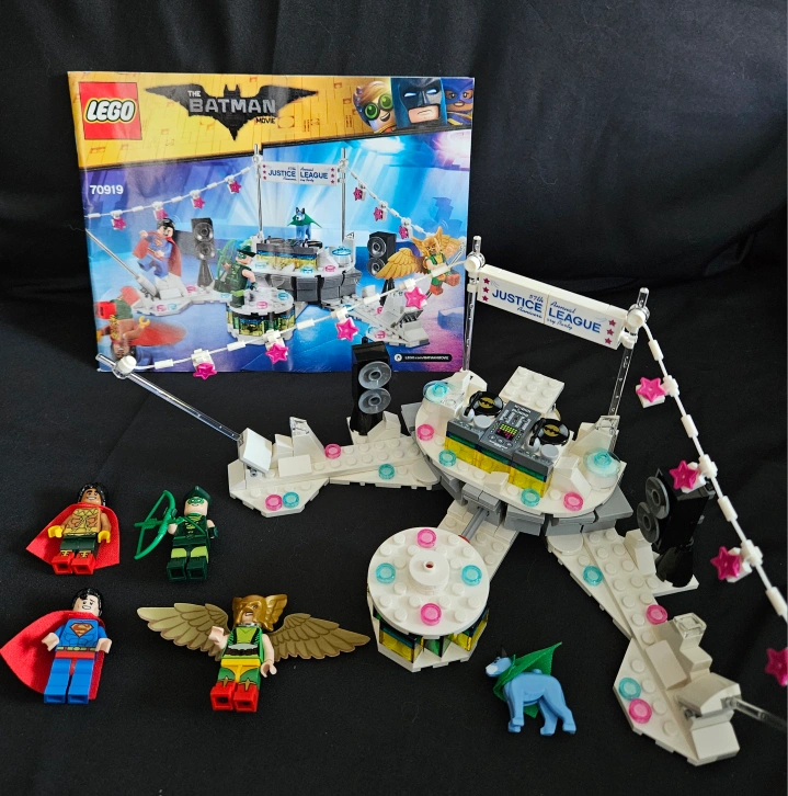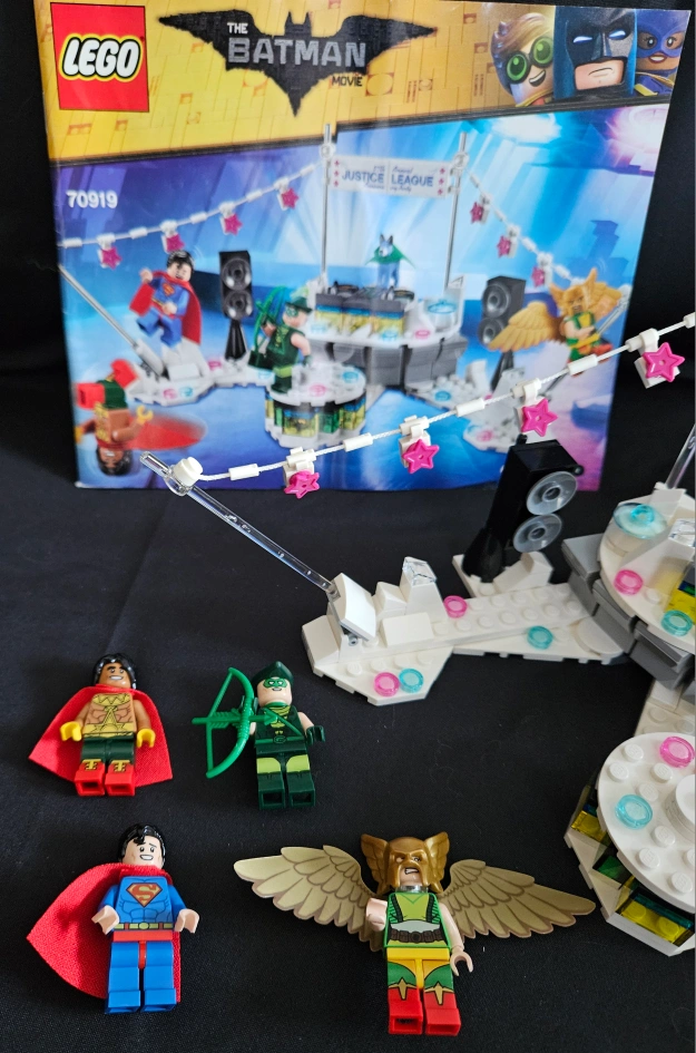 LEGO Retired Set #70919 - Justice League Anniversary Party. Includes the full set (EUC) as shown and the instruction manual (VGUC) as shown. Milton pick up, cash only, no holds.