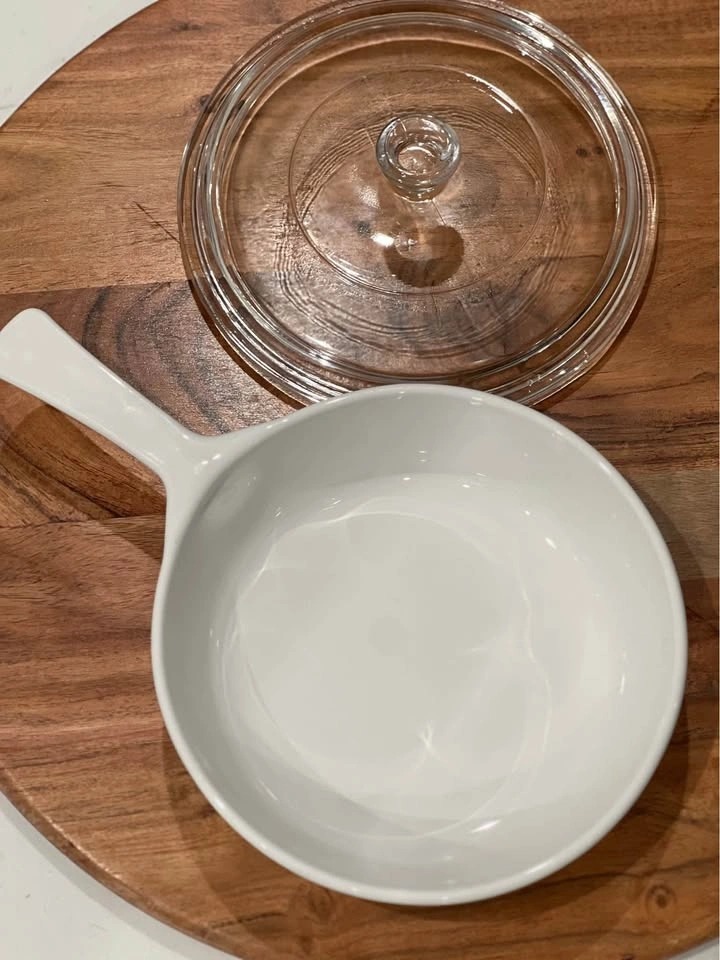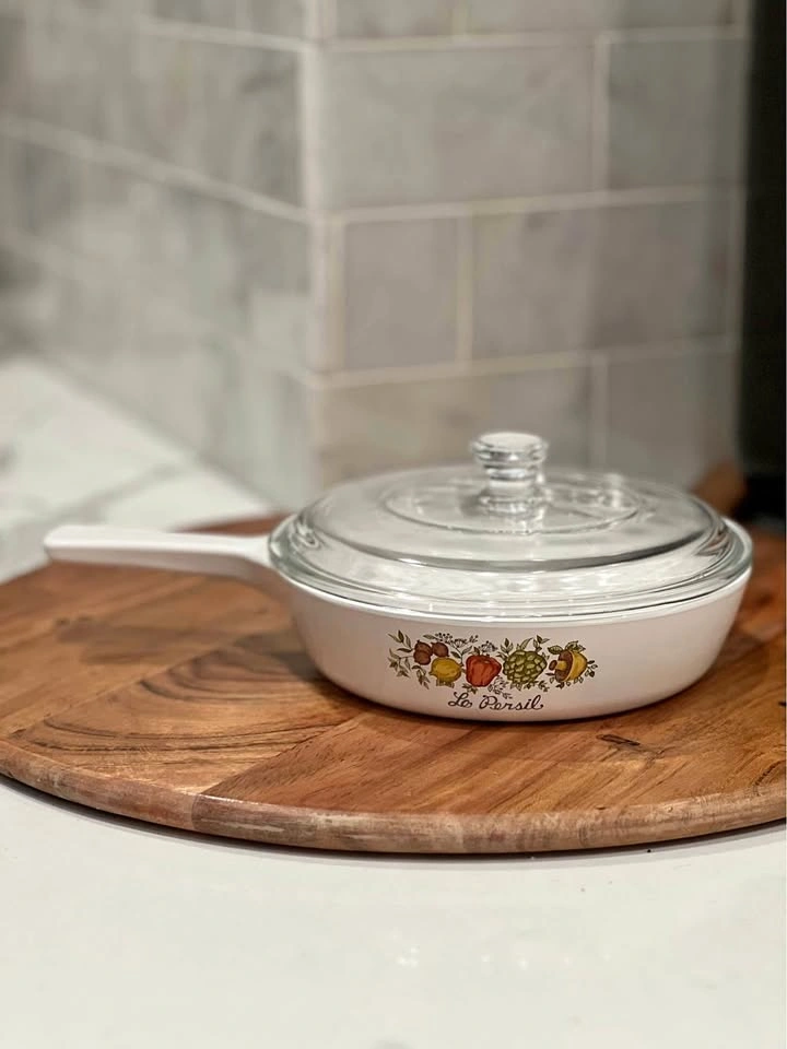 Corning Ware Spice of Life “Le Persil” P-83-B 6.5 inch Skillet w/ Lid P-83-C This Spice-of-Life skillet was a part of Corningware's Menuette series which produced skillet style dishware that was able to be used on the stovetop, in the oven, and in the microwave. This skillet is the 6 1/2" inch size with the capacity to hold 2 cups.