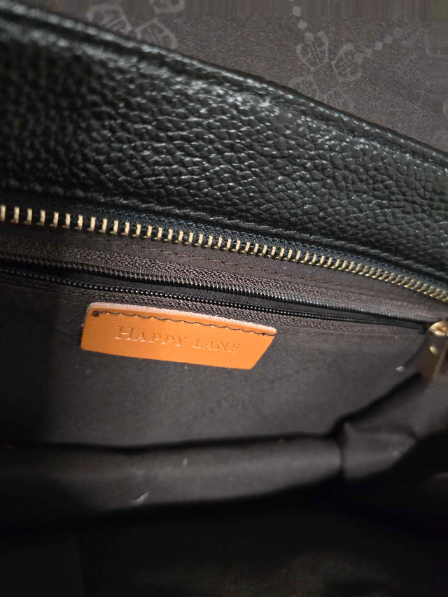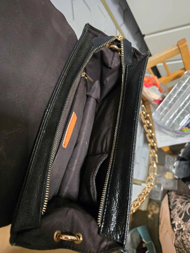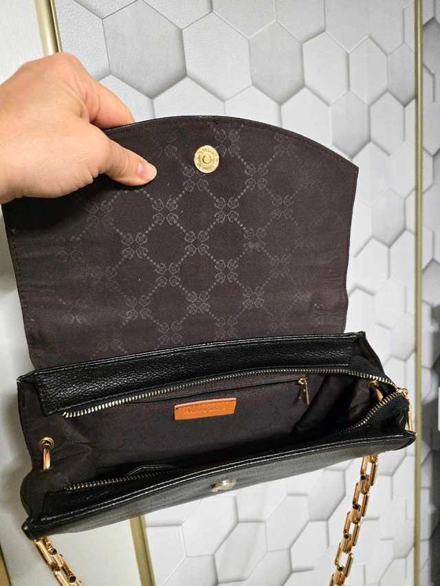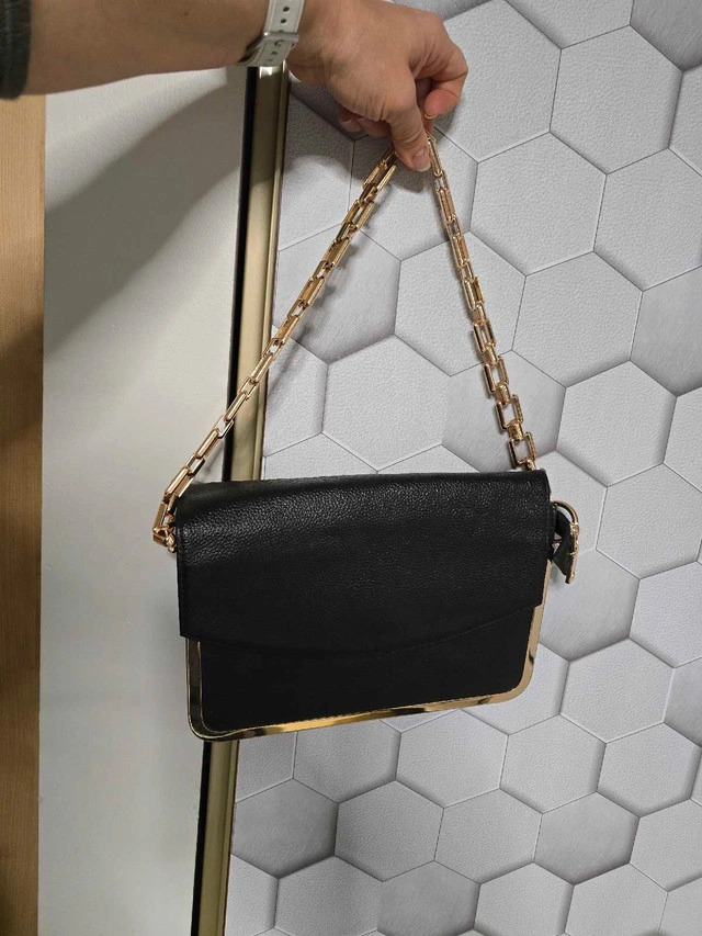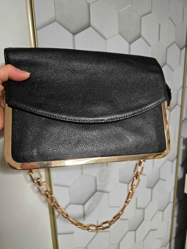 Add a touch of sophistication to your ensemble with this Happy Lane black clutch featuring a gold chain, perfect for evening events or special occasions. This used clutch is in good condition, ready to elevate your style. Features: - Brand: Happy Lane - Colour: Black with gold accents - Style: Clutch with chain strap This clutch is waiting for its next adventure. If the ad is up, it's available, so don't miss out!