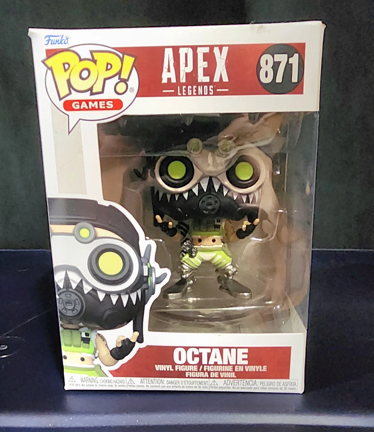 Selling a Funko Pop! figure of Octane from Apex Legends. This is number 871 in the series. It's a vinyl figure and comes in the original box. It's vaulted it's going for over $70 on Ebay