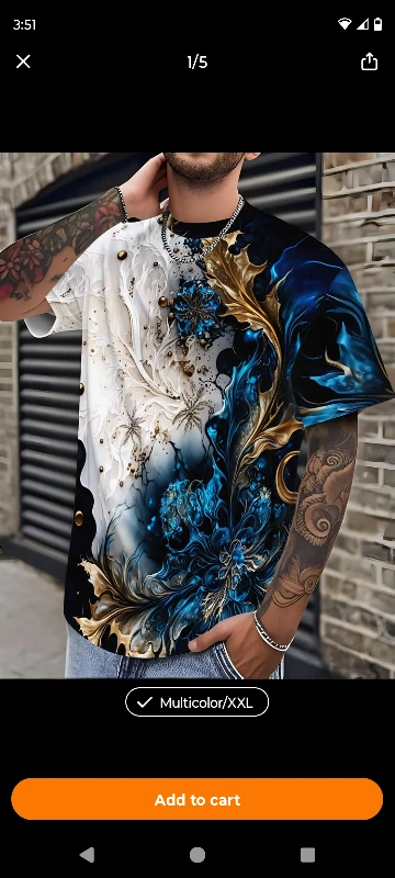 Selling a multicolor T-shirt in size XXL. It features a unique design with white, blue, and gold accents. Perfect for adding a bold statement to your wardrobe! worth 150 never worn asking 80 or best offer.