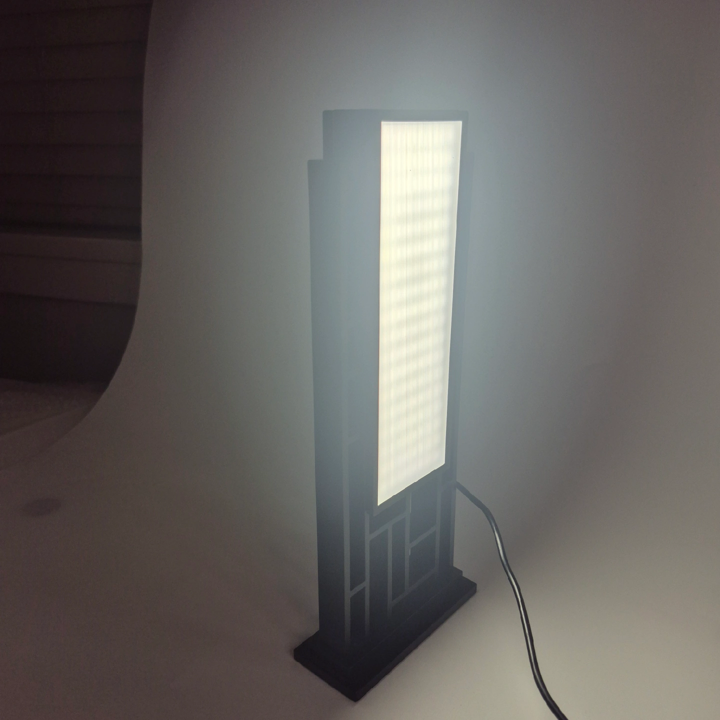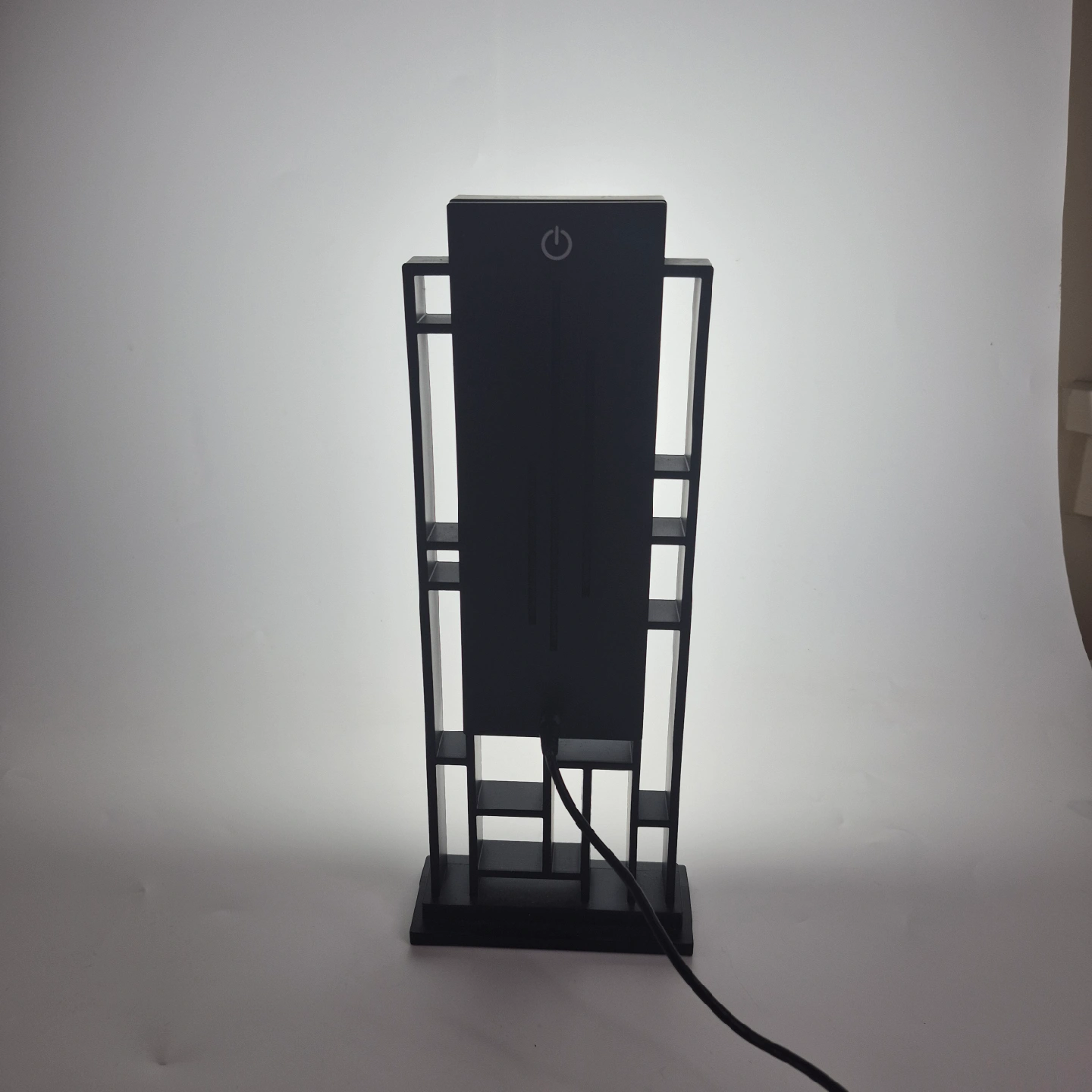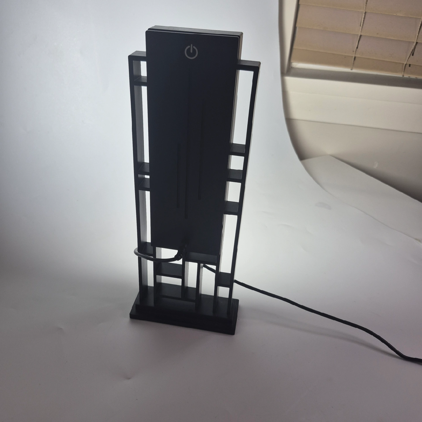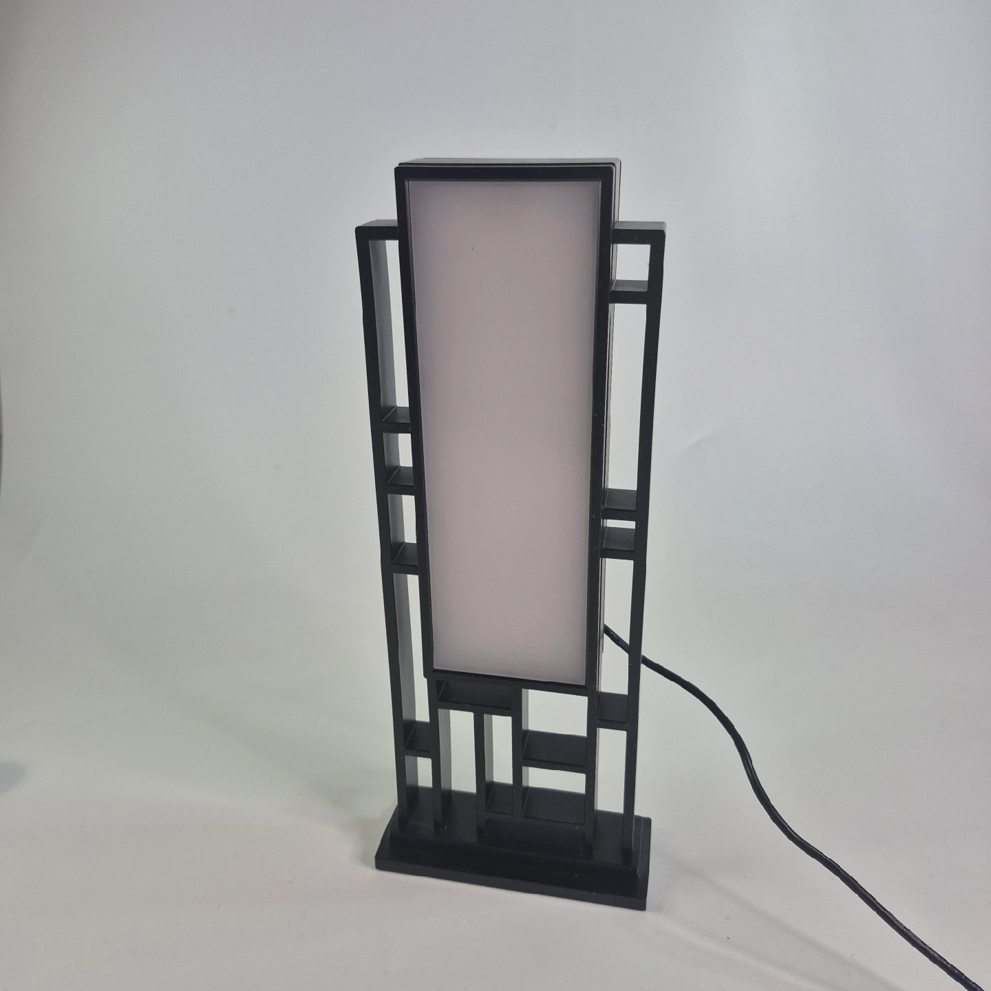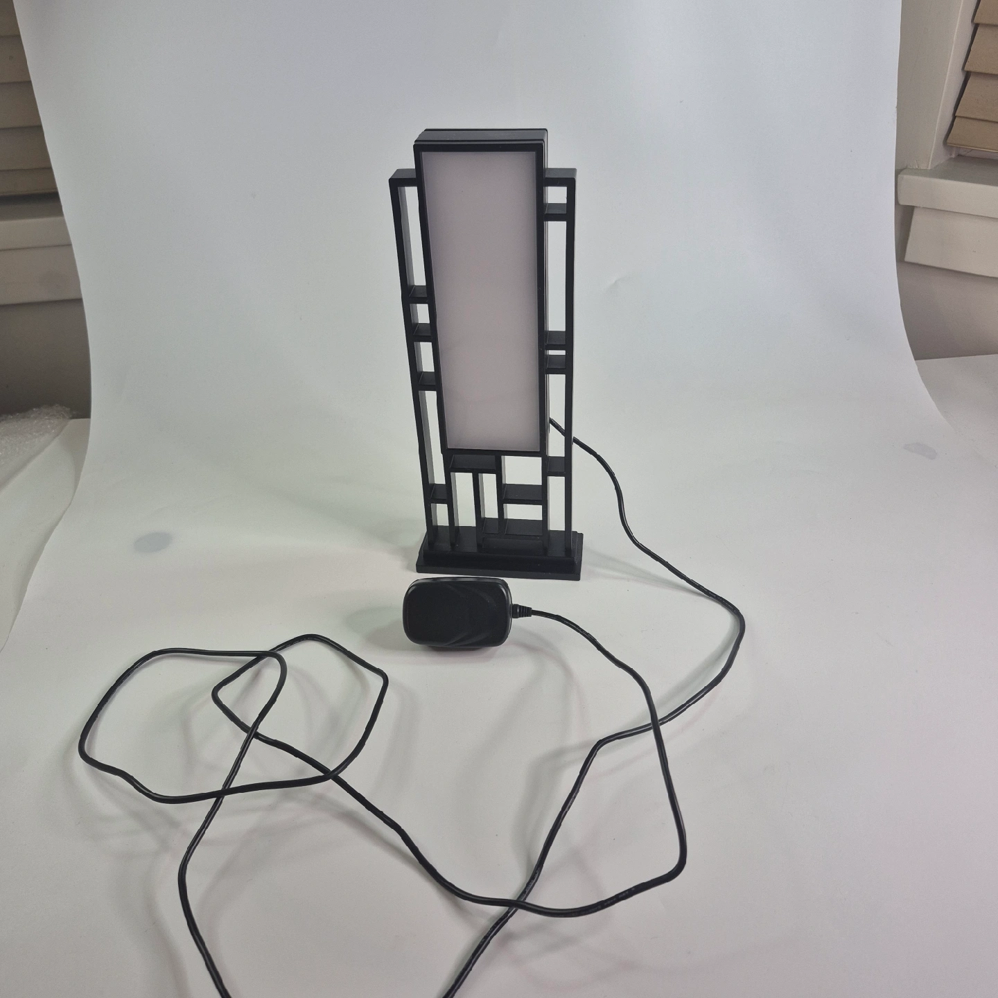 Looking to add a touch of modern flair to your space? This black table lamp is just the ticket! It features a unique geometric design and provides a soft, ambient light. Perfect for a bedside table, desk, or living room accent