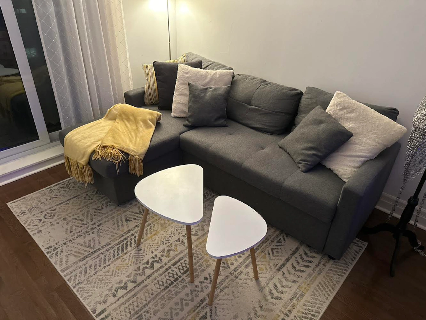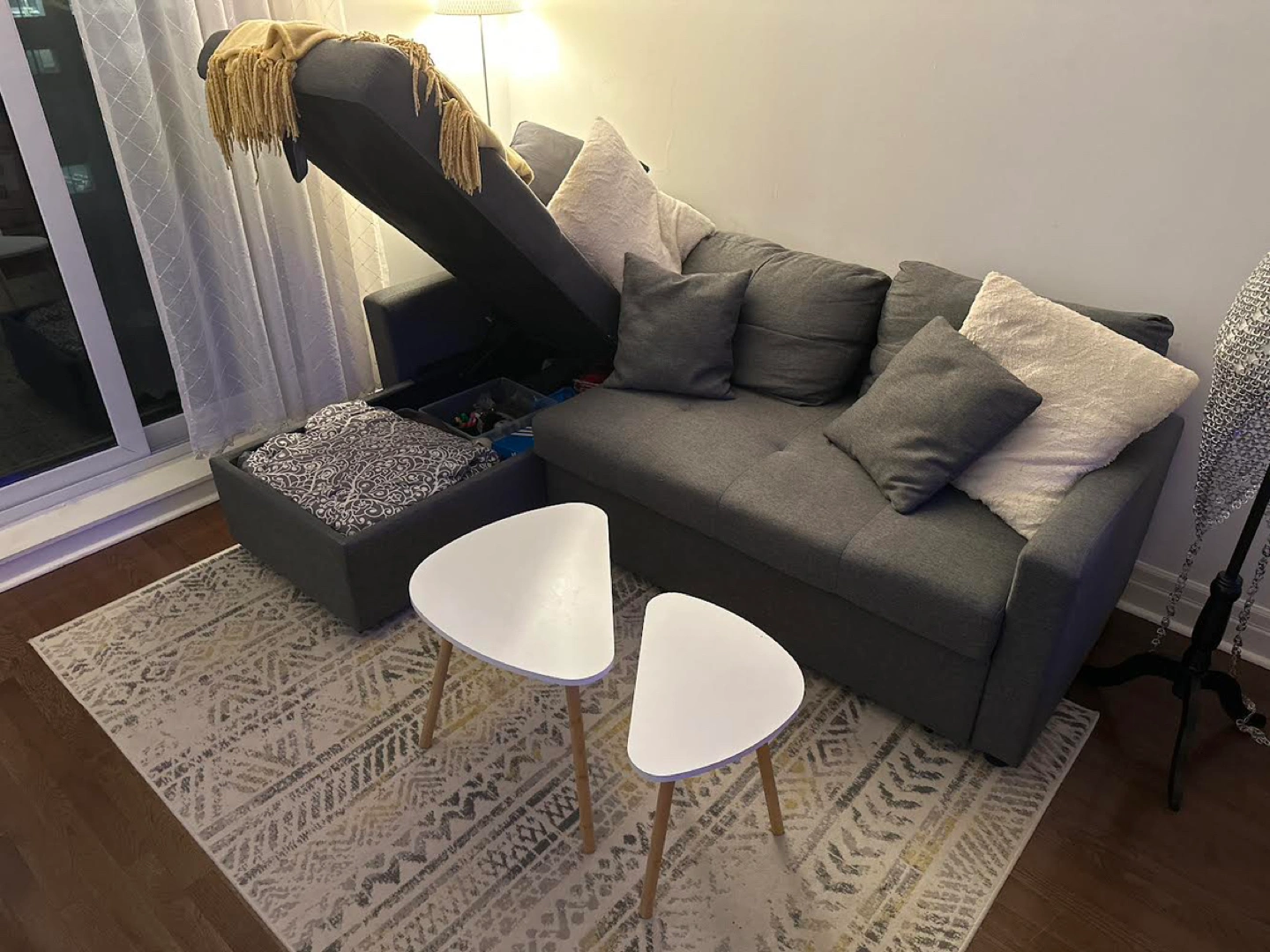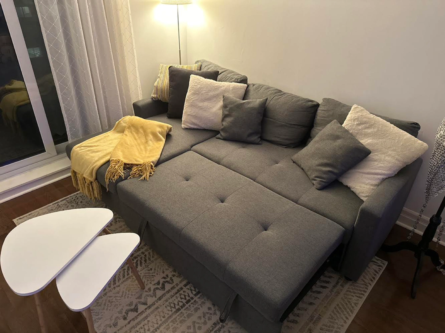 Sleeper + storage L Shaped grey couch - from a non smoker apartment and in great condition - bought new recently