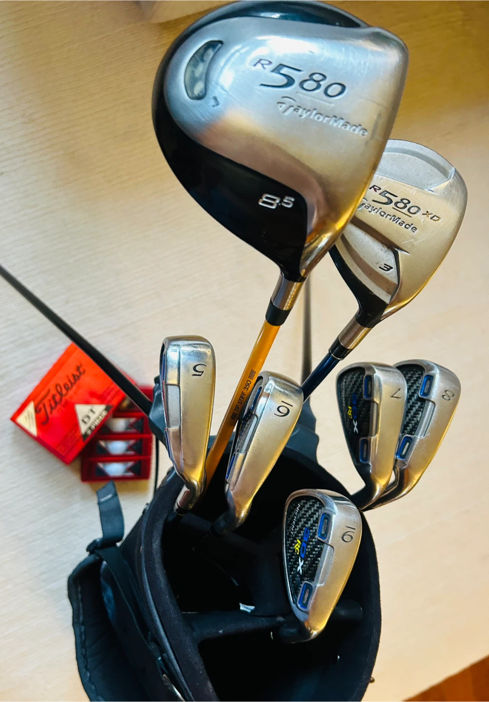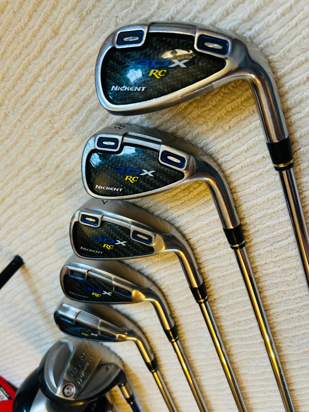 Highered Initial Launch Trajectory and Enhanced Playability. The Rarely Seen Nickent 3DX Irons + TaylorMade r580 Wood/Driver Provide All Your Need to Start the Game.