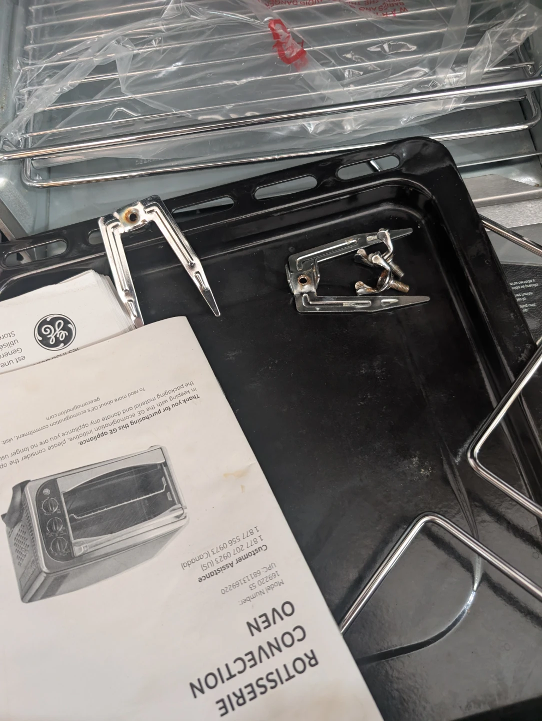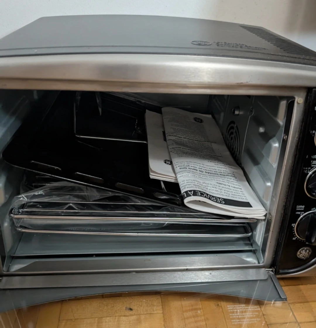 Selling a GE toaster oven. It has bake, toast, and rotisserie functions. It does not come with the box, but has the manual. It is in good condition , and has been in storage for over a year.