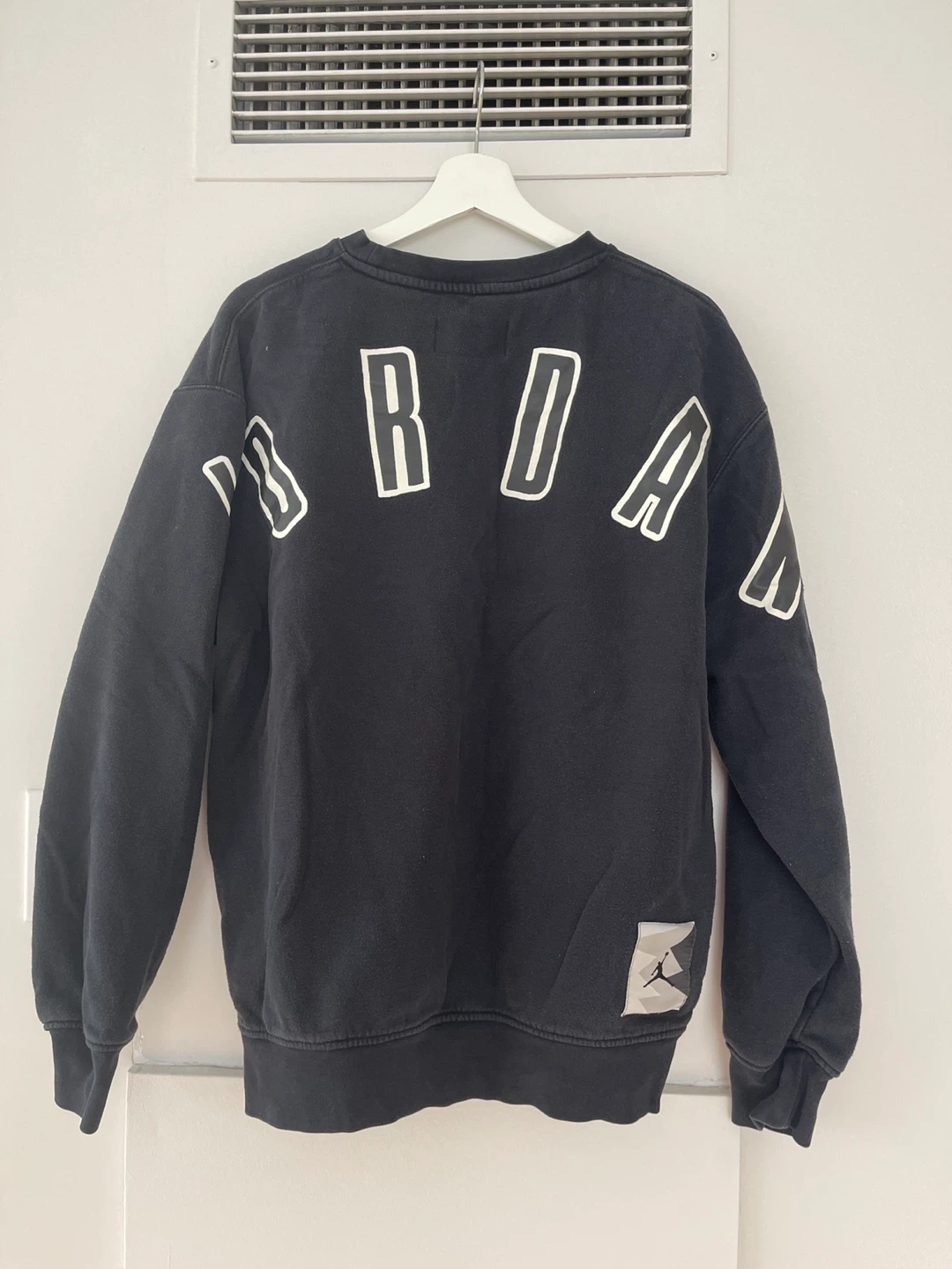 Selling a black Jordan crewneck sweatshirt. It features the classic Jumpman logo on the front and "JORDAN" across the back. It's in great condition and perfect for everyday wear!
