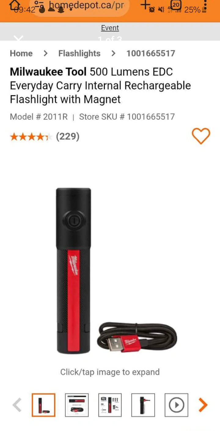 15Selling a Milwaukee 500 Lumens EDC (Everyday Carry) Internal Rechargeable Flashlight with Magnet! It's in great shape and ready to light up your life. Model number 2011R.