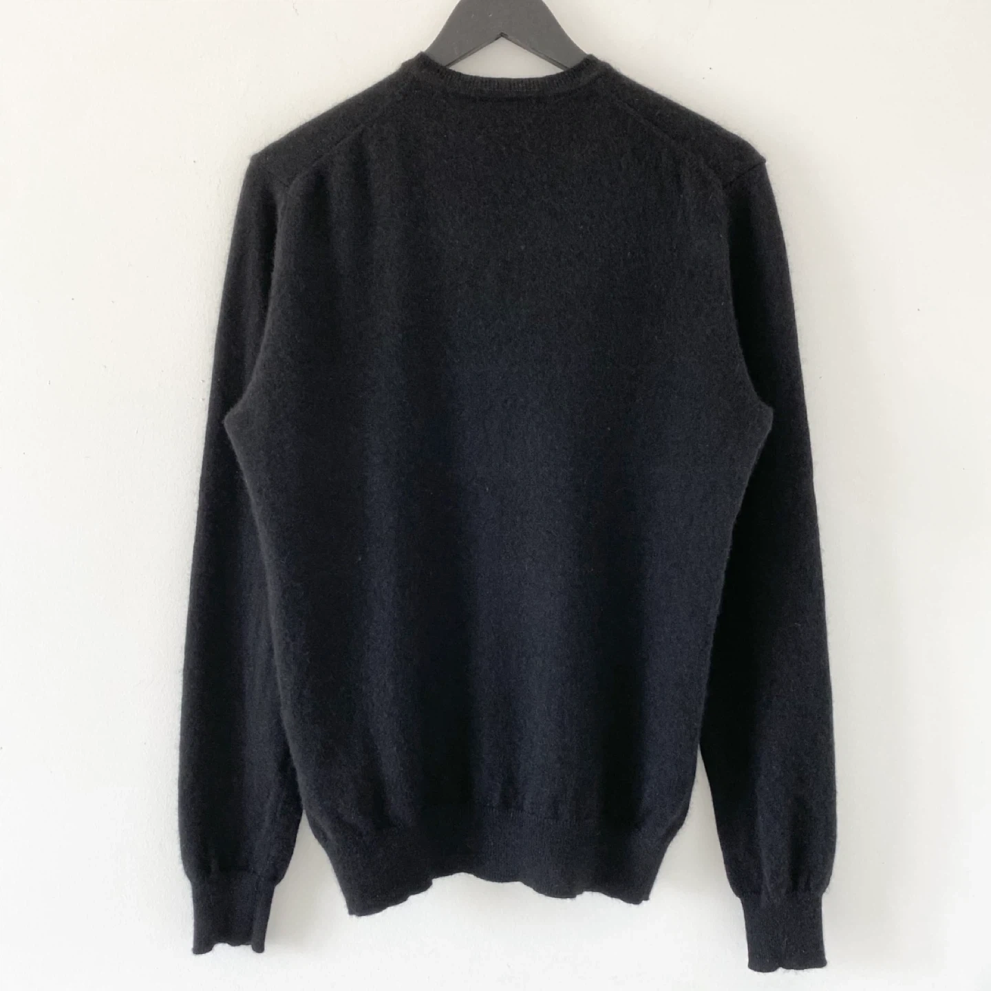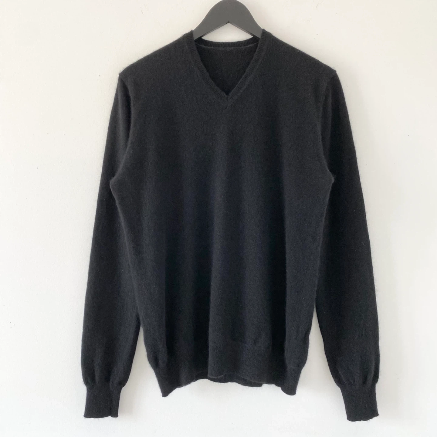 Made of medium weight 100% cashmere. It's incredibly soft, cozy and luxe. I don't find it itchy but it's subjective. This classic style, colour and quality will stand the test of time. Main label has been removed. There's no staining, snags or damage. It's clean and in excellent condition.