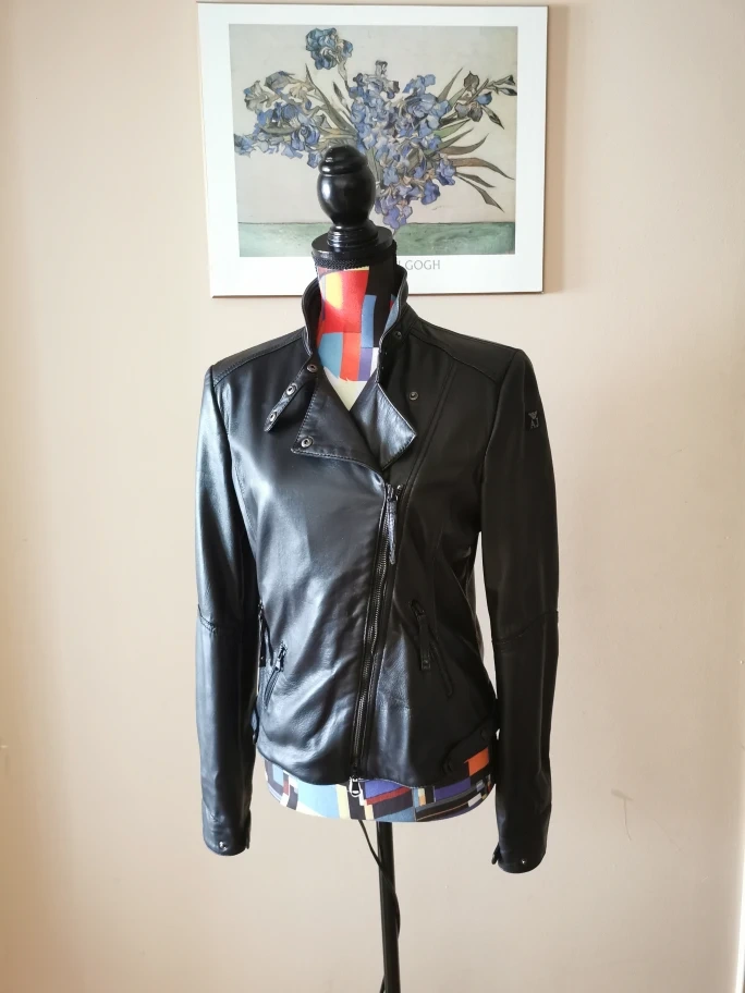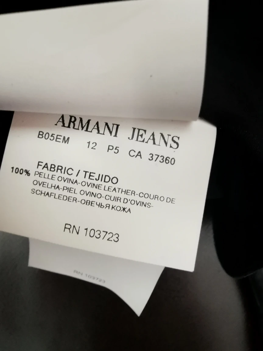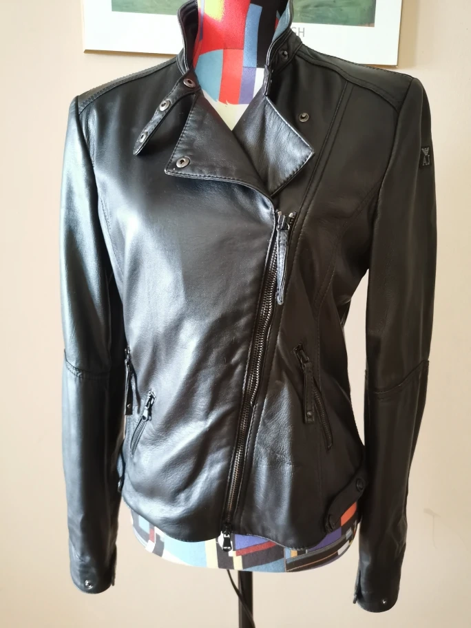 Armani Black Jenuine Ovine Leather Jacket. Size 8, fits size S, in excellent condition, very soft and comfortable, about 20 inch long, shoulders about 17, sleeves are 24 and can be folded.