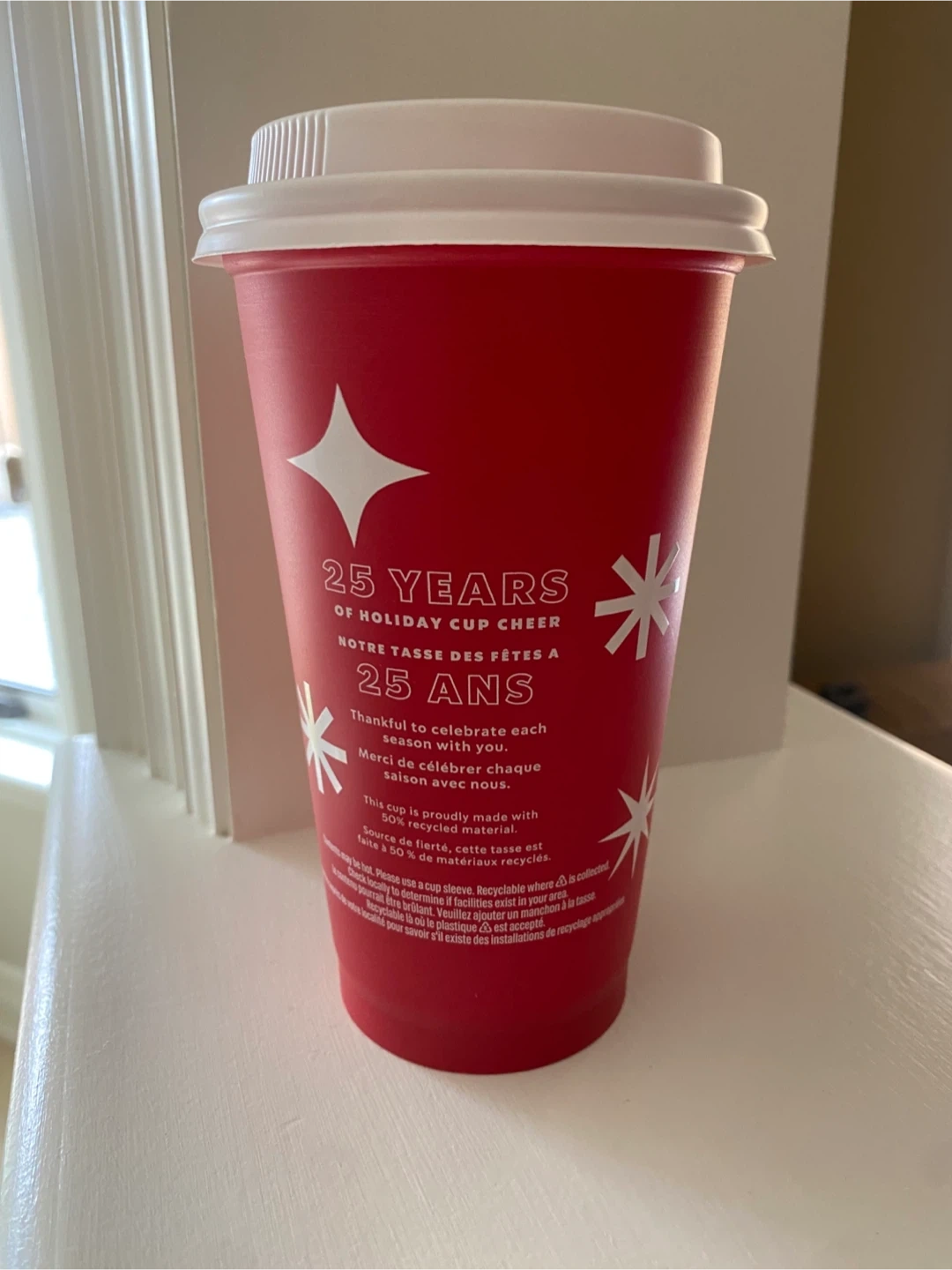 Starbucks 25 years anniversary collector holiday cup, ready for your favourite festive drinks! Features a cheerful design for the holiday season.