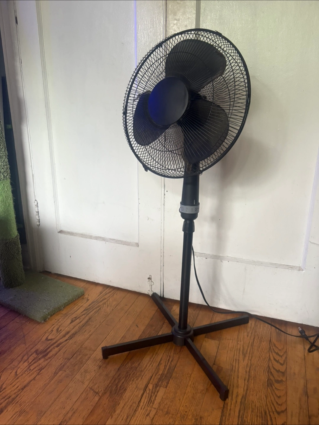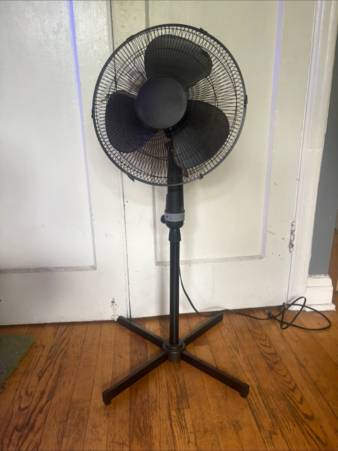 Selling a black standing fan in great condition. It's perfect for keeping cool during the summer months. It has an adjustable height and multiple speed settings for your comfort