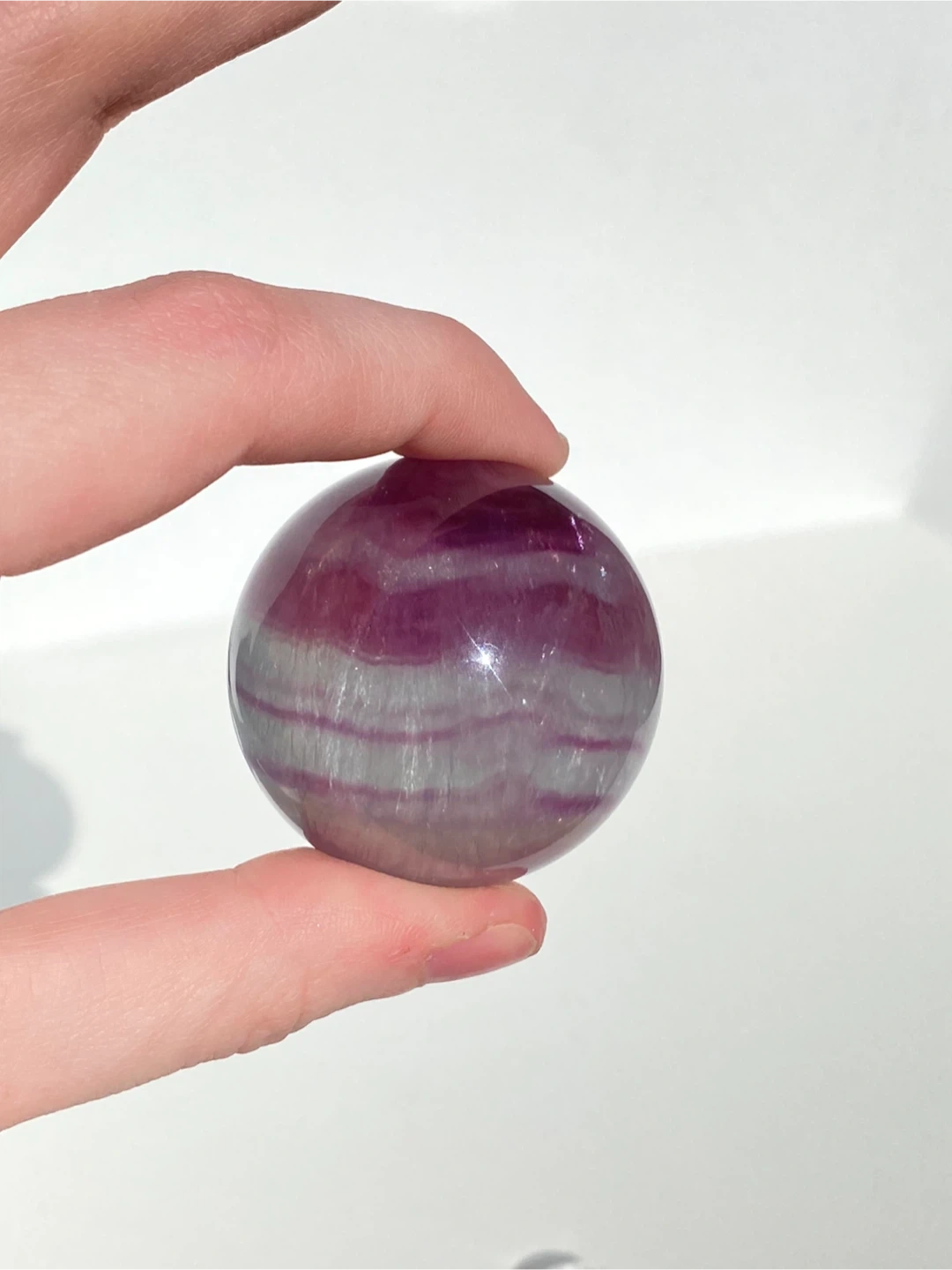 Gorgeous natural Candy fluorite sphere! With a ton of rainbow inclusions, amazing tons of colors throughout the whole sphere. Approximately 1.63" Diameter 117 Grams You will receive exact item shown. The ultimate cleanser and purifier of negativity. Its energies serve as a shield around your emotional body. (Stand sold Separately)