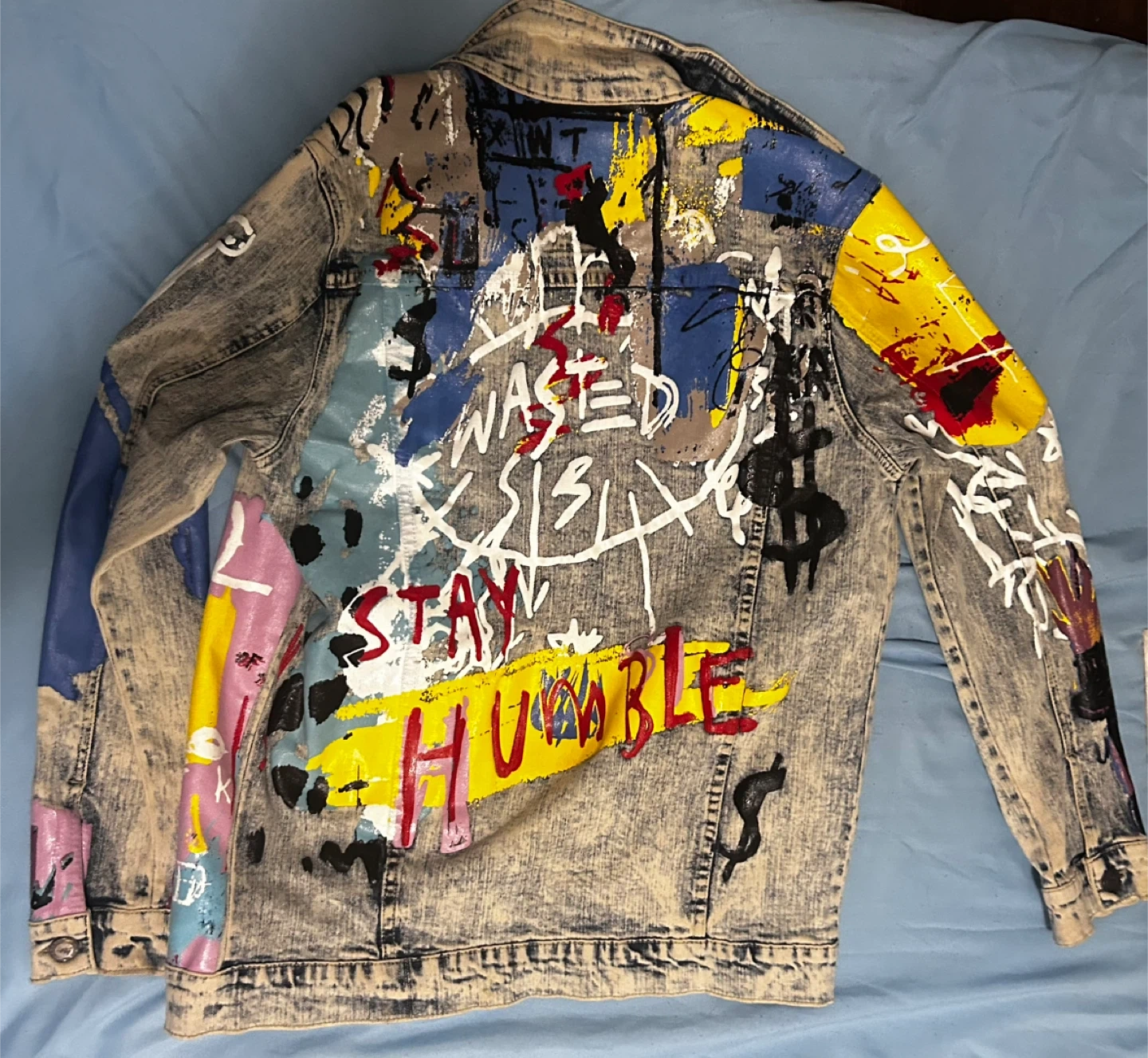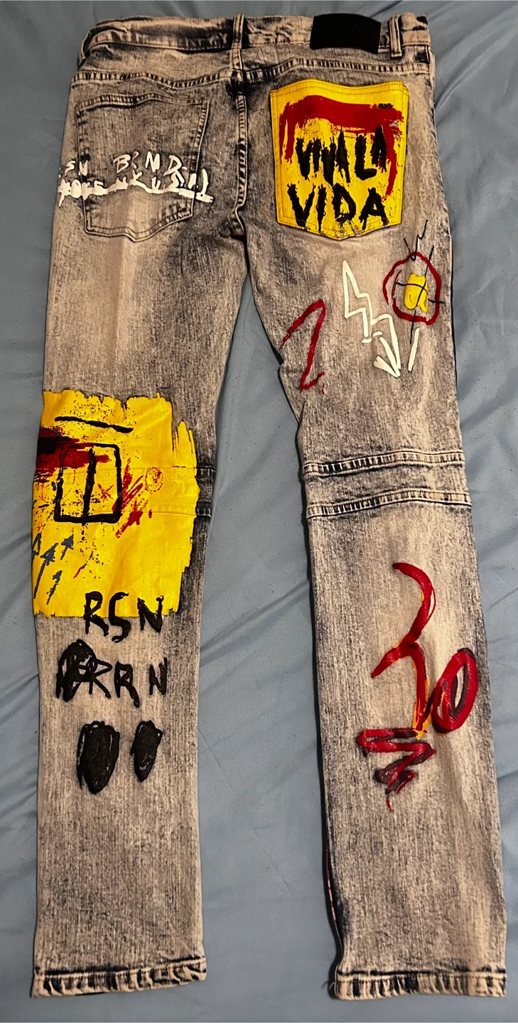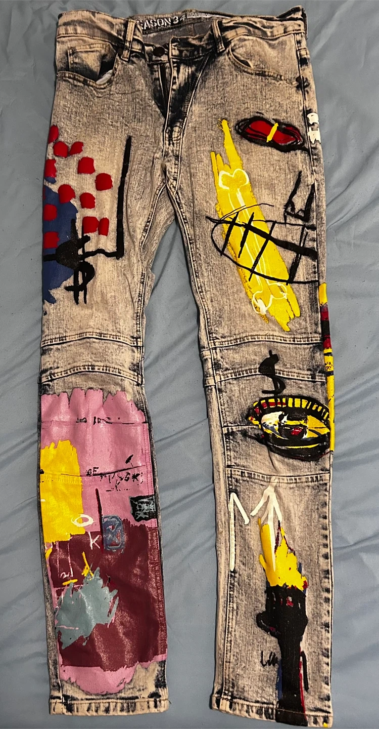 Selling a unique, custom-painted denim jacket and jeans set. The jacket and jeans feature vibrant, hand-painted designs. This set is sure to turn heads and add a pop of art to your wardrobe! Jacket 45$ Pants 45$ Together 75$