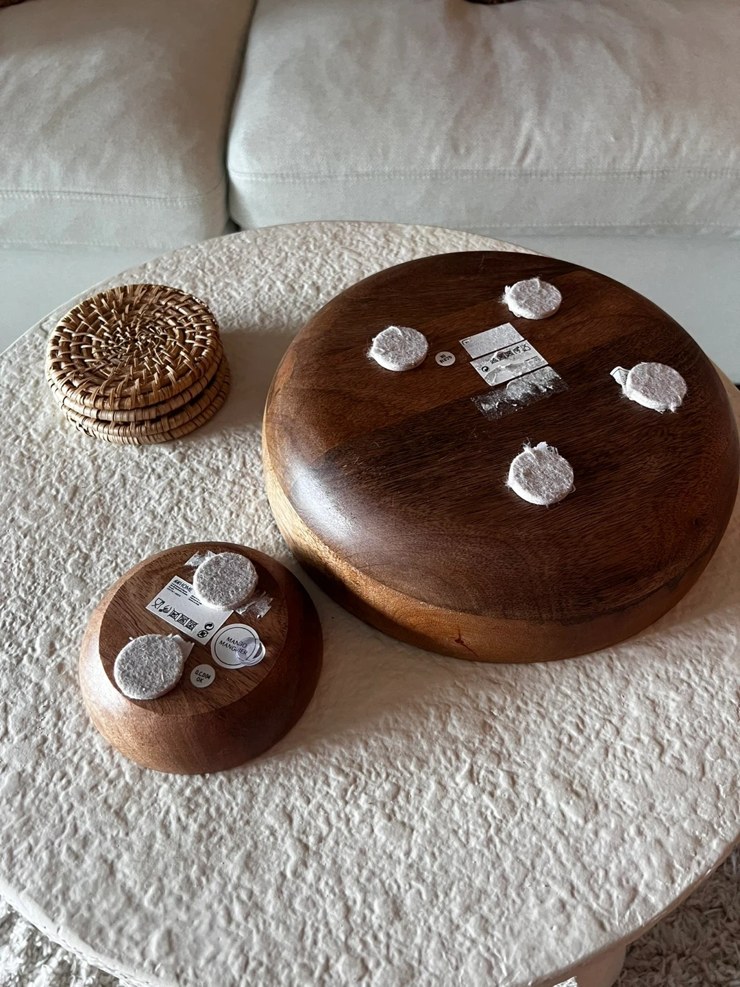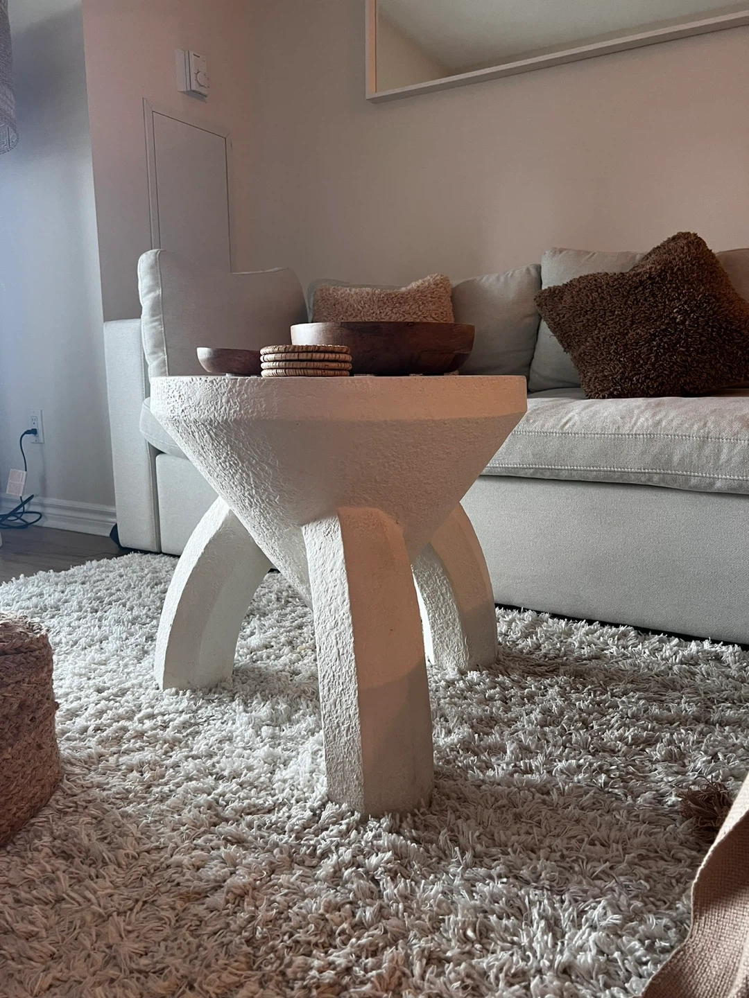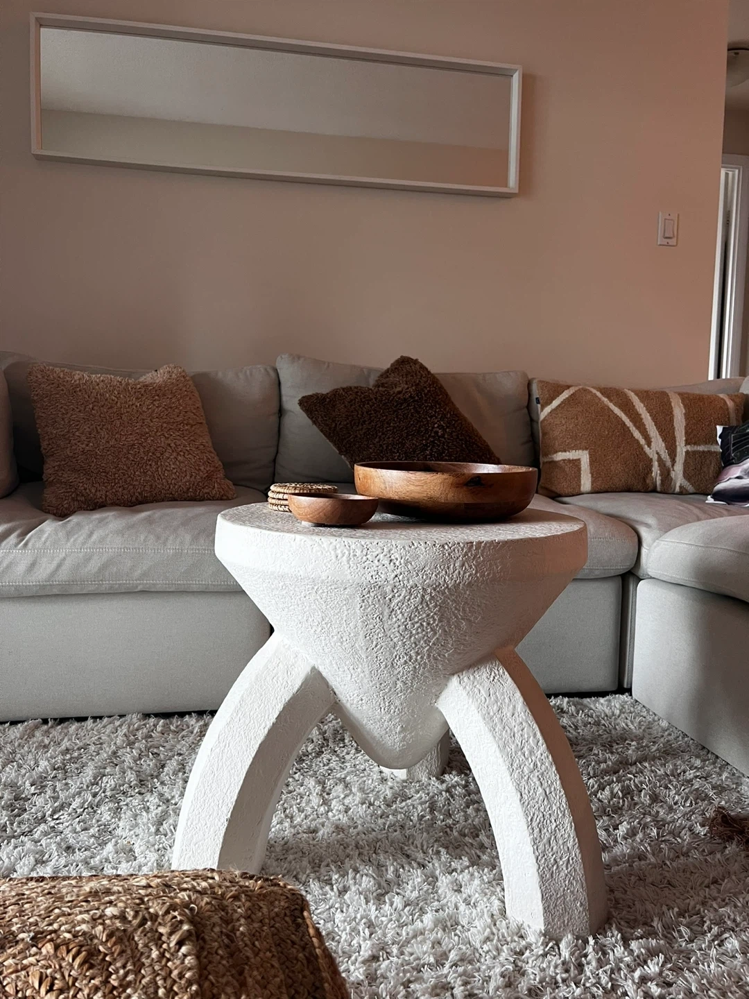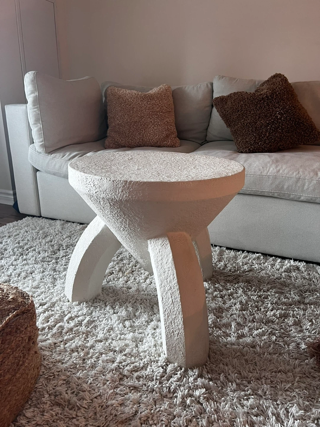 Selling a textured white round accent table from Crate and Barrel. It's in great condition and would be perfect for adding a unique touch to your living space or bedroom! It's very sturdy and stylish, ready to find a new home. Comes with the wooden bowls from Zara Home and the coasters from Crate and Barrel. Dimensions ๐ Height: 19 inches Price is firm. Thank you! Cash only.