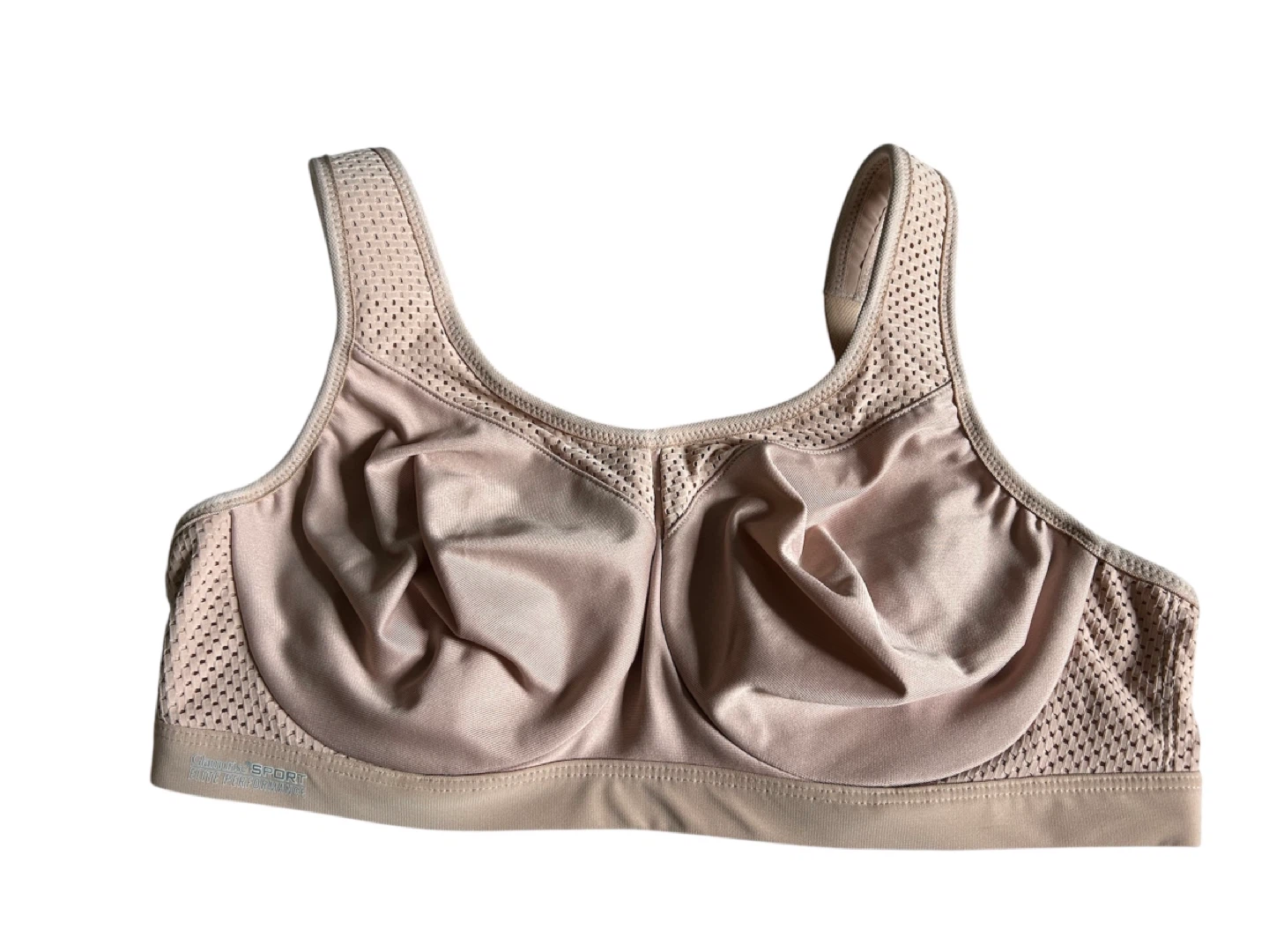 Glamorize sports bra in a beige colour, size 36D. Great for workouts or everyday wear! The material is breathable and comfortable, perfect for any activity. It's in excellent, lightly worn condition and ready for a new home. It has an underwire.