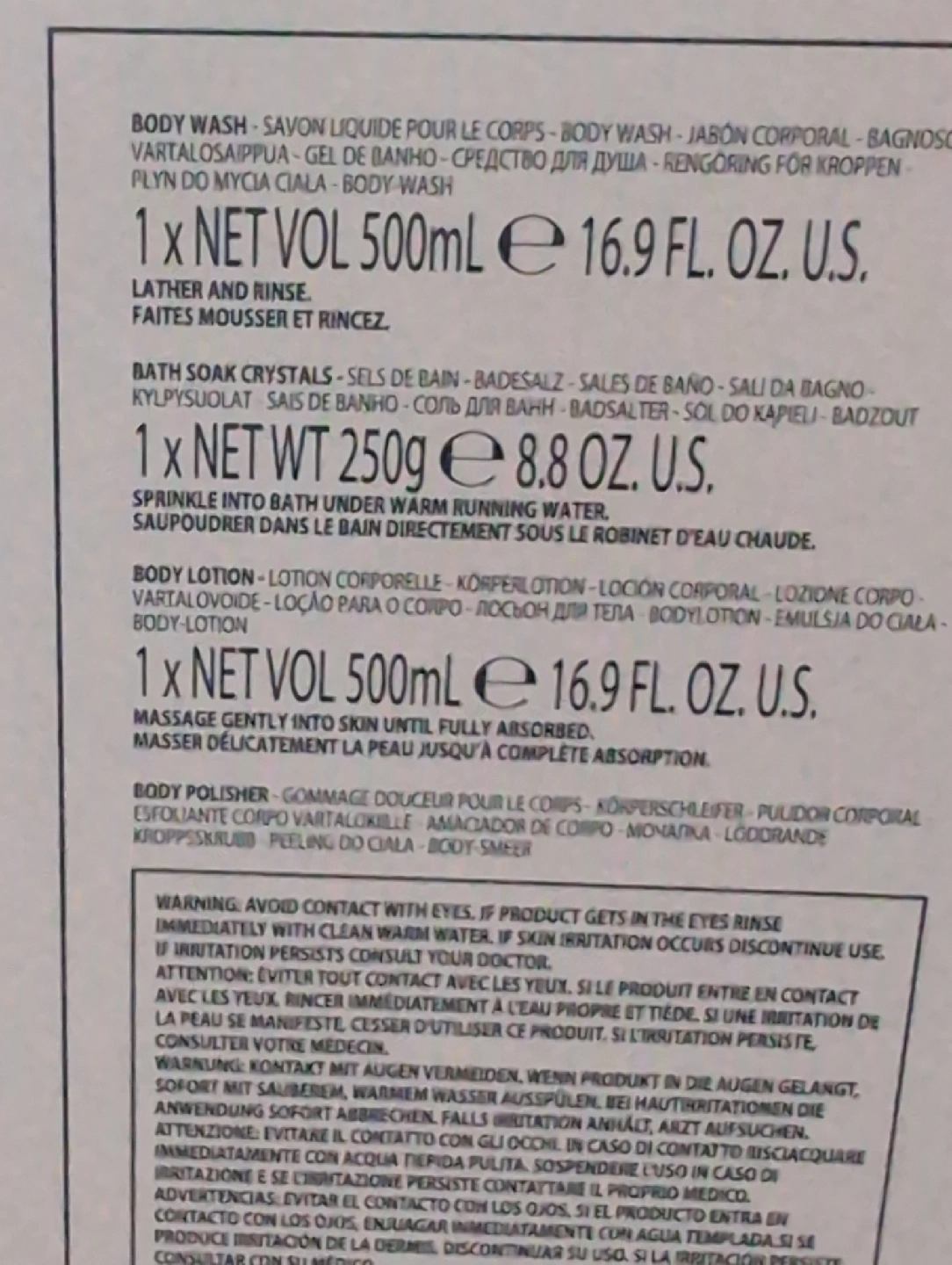 - Body Lotion: 1 x NET VOL 500ml 16.9 FL OZ US