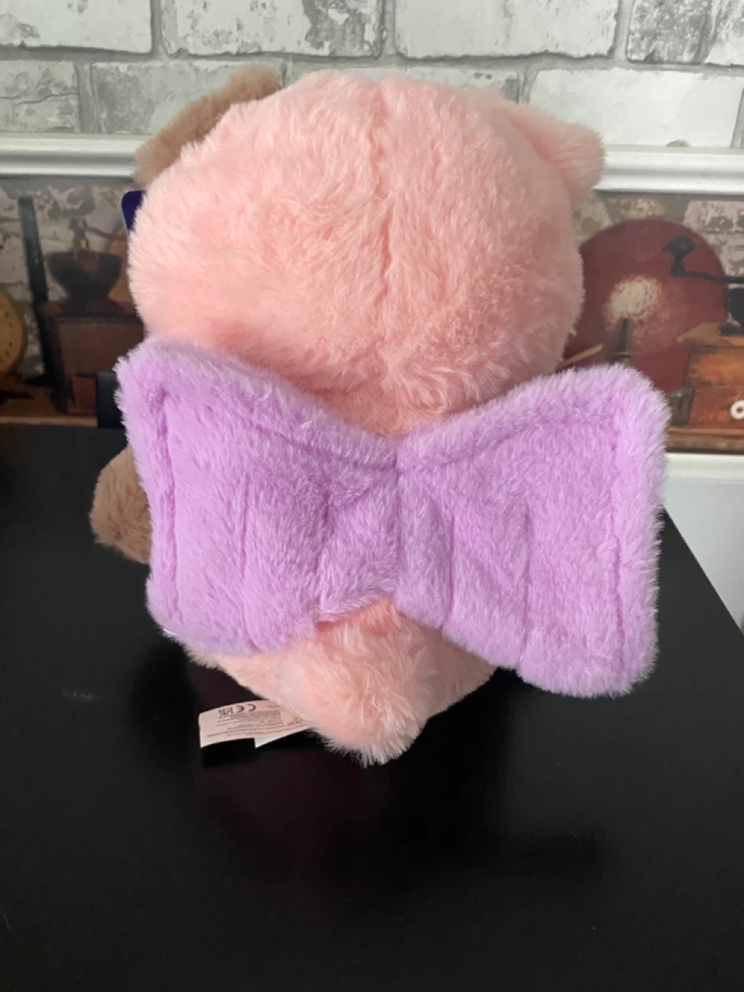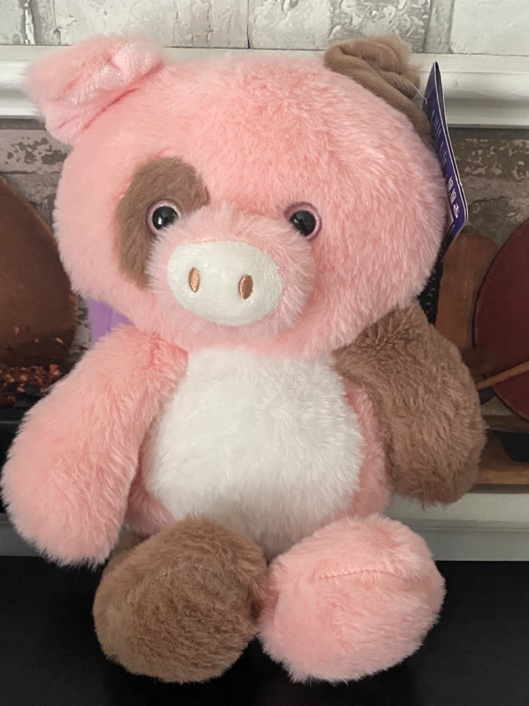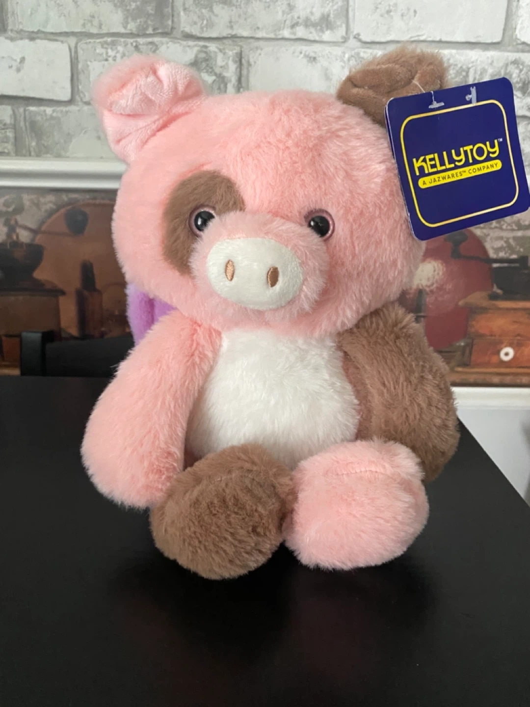 This adorable pig is pink, white and brown with cute purple wings on its back. It still has its original tags attached.