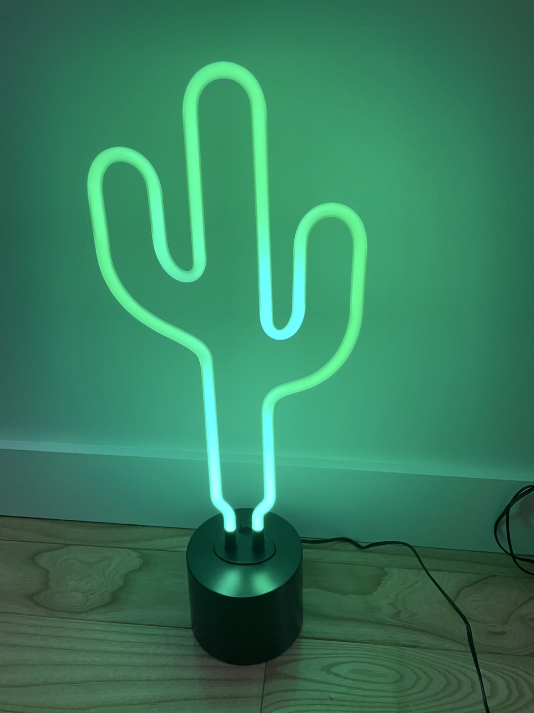 Add a touch of whimsy to your space with this fun cactus neon lamp! It's in great condition and ready to brighten up any room. Perfect for a desk, shelf, or nightstand