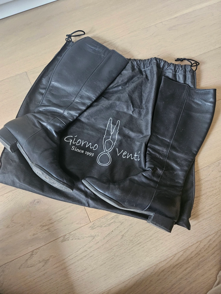 Selling a pair of Giorno Venti knee high boots in black leather. They are in good condition and come with the original dust bag!
