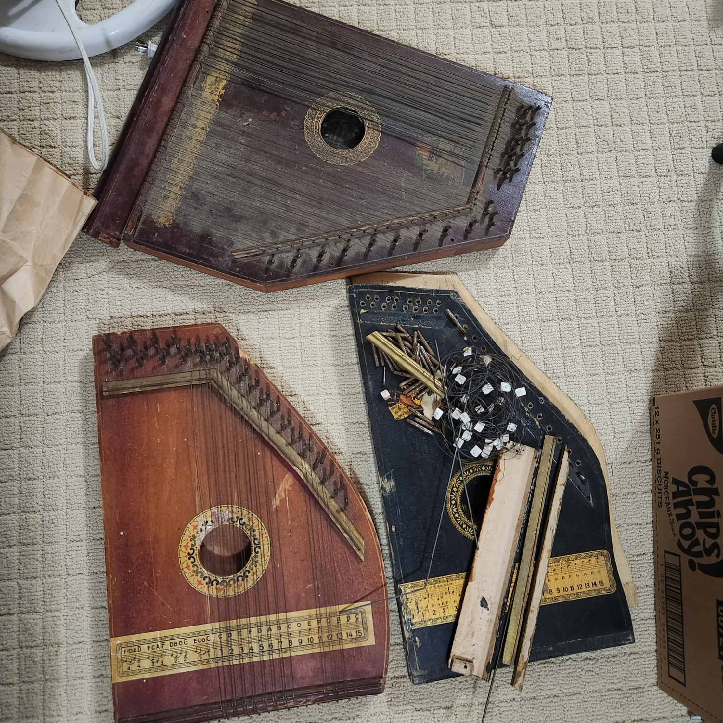 64Selling 3 autoharps all together They show signs of wear and age, but could be restored. Please see photos for condition.