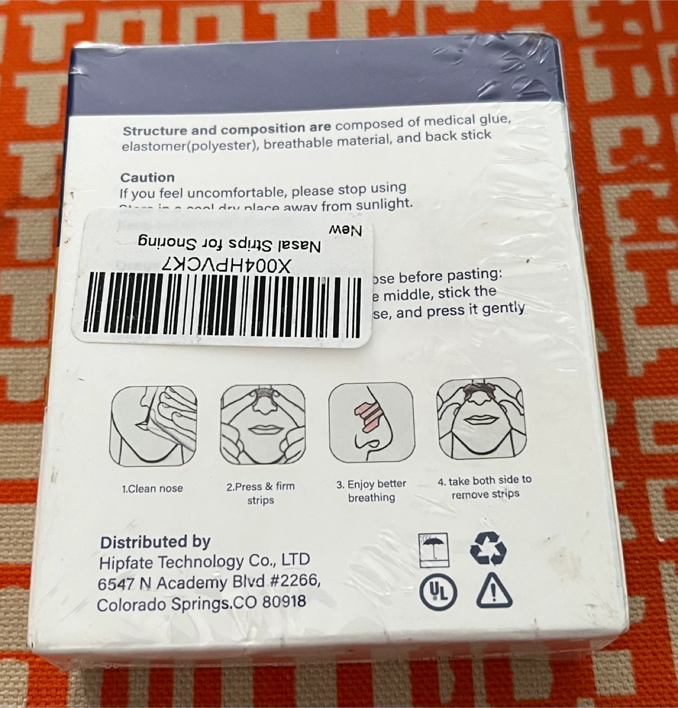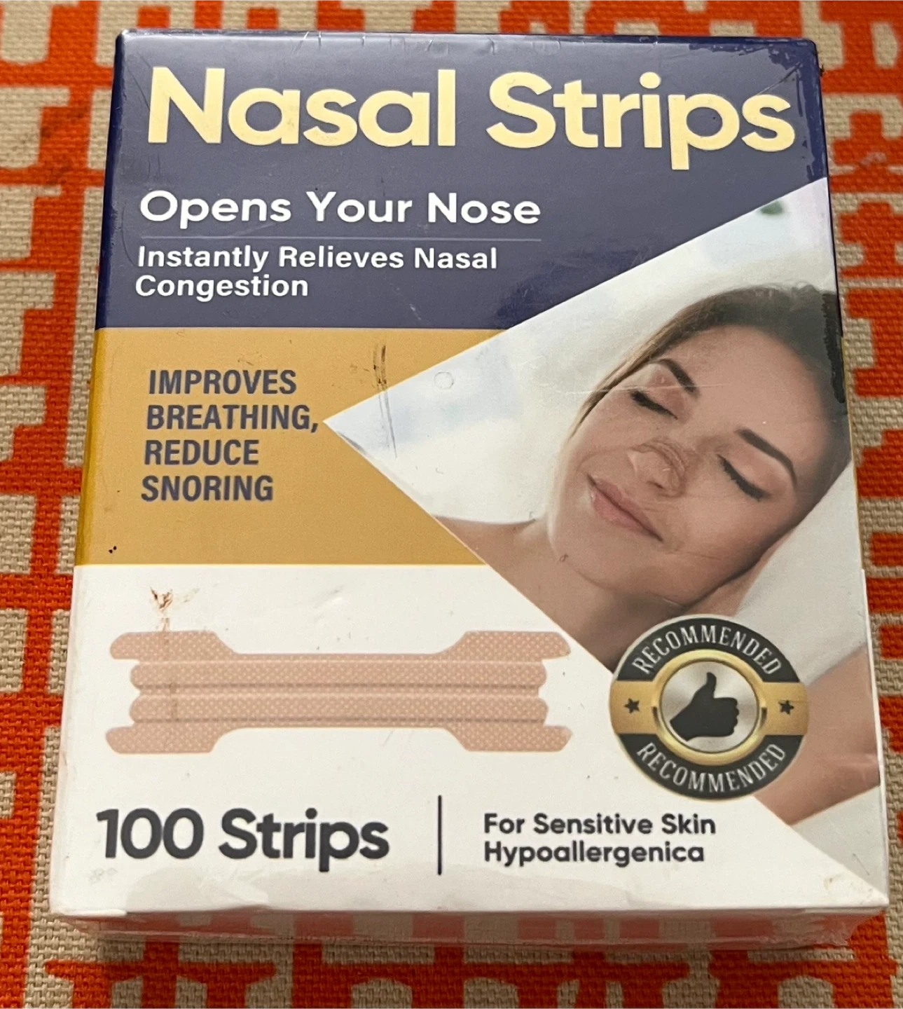 I'm selling a box of nasal strips that are designed to open your nose and instantly relieve nasal congestion. These strips improve breathing and reduce snoring. They are hypoallergenic and for sensitive skin. Each box contains 100 strips.