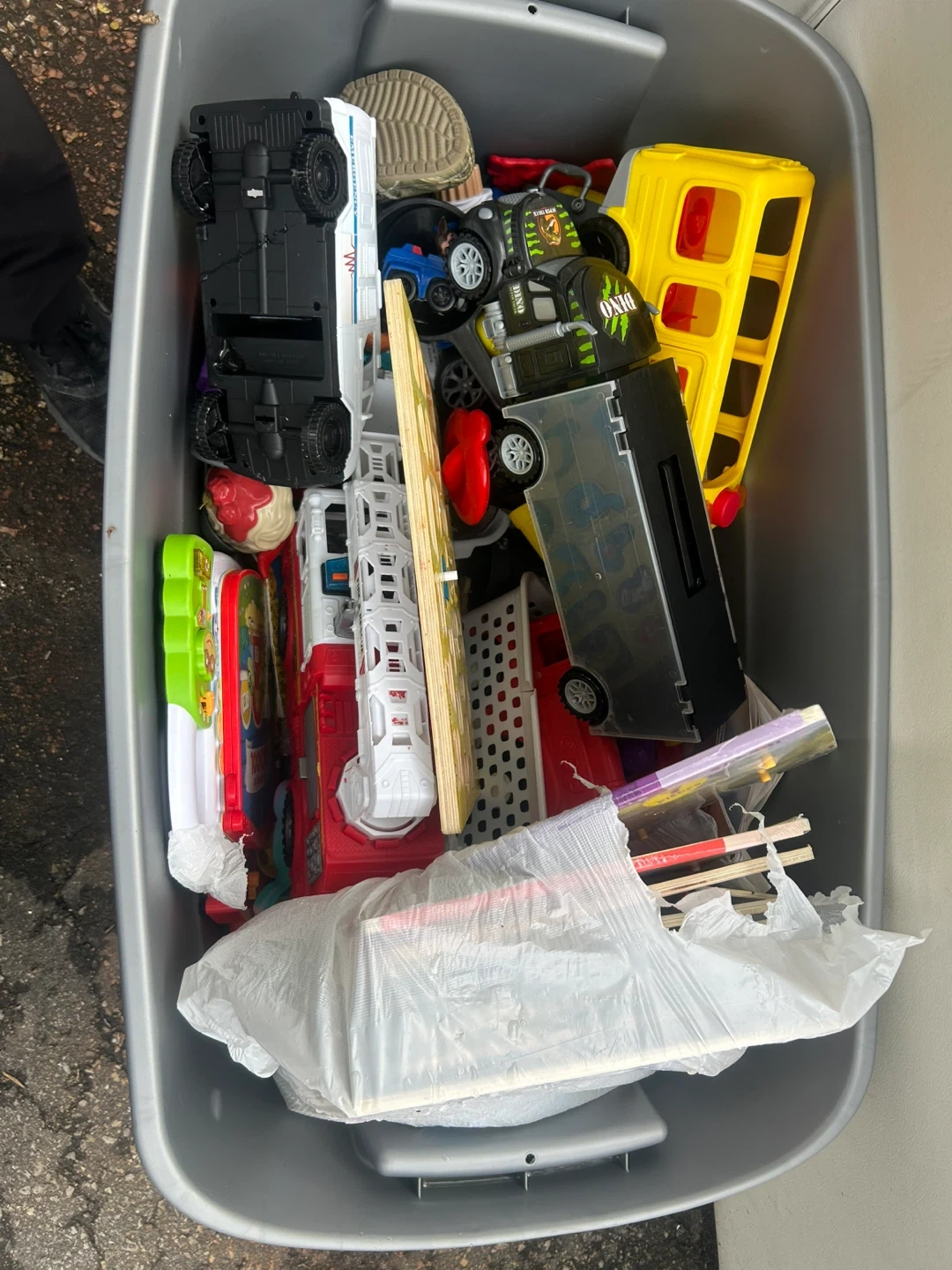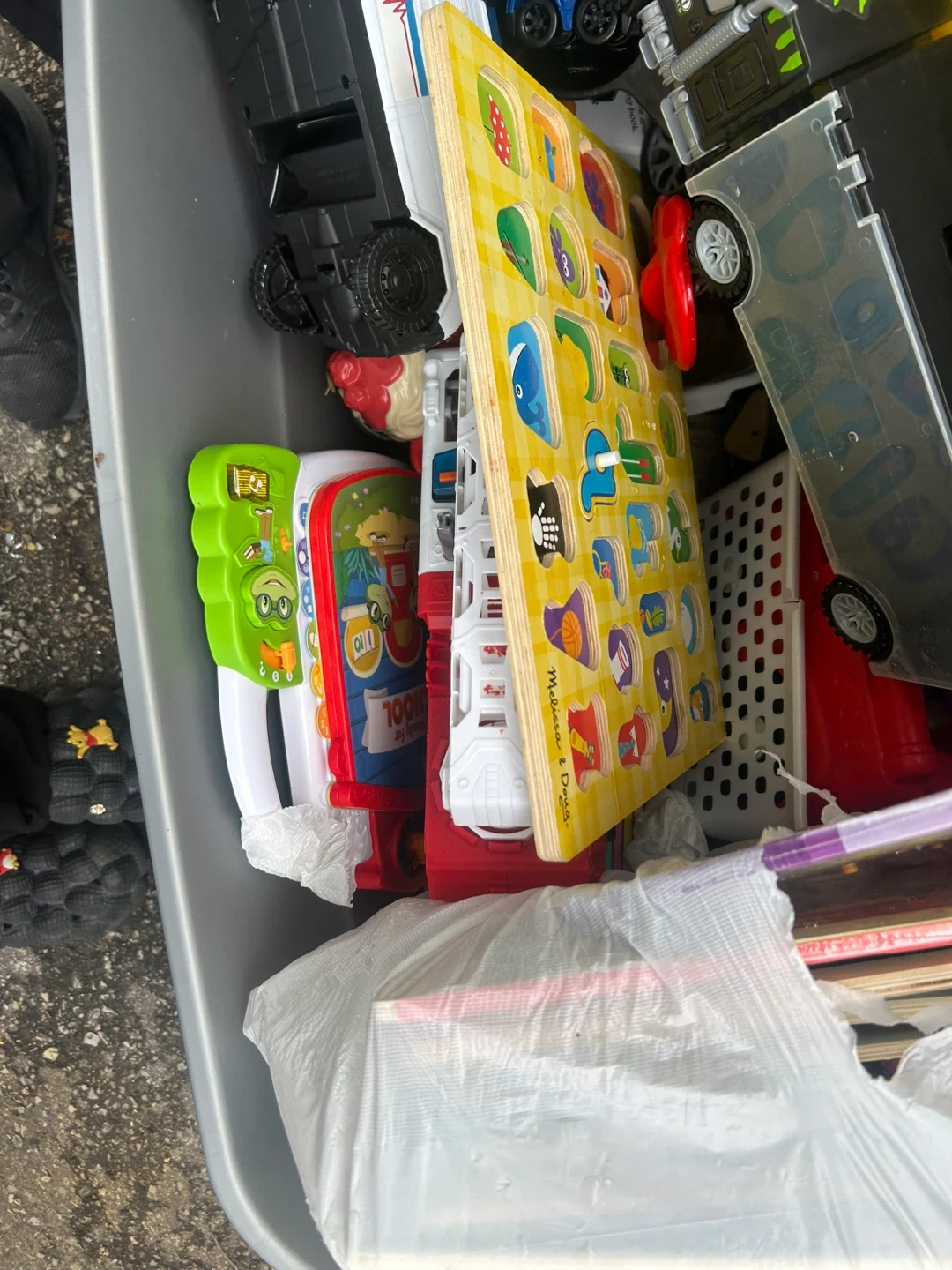 Selling a mixed lot of various toys. Includes toy cars, a wooden puzzle, and other assorted items. Great for kids!Free come take it!