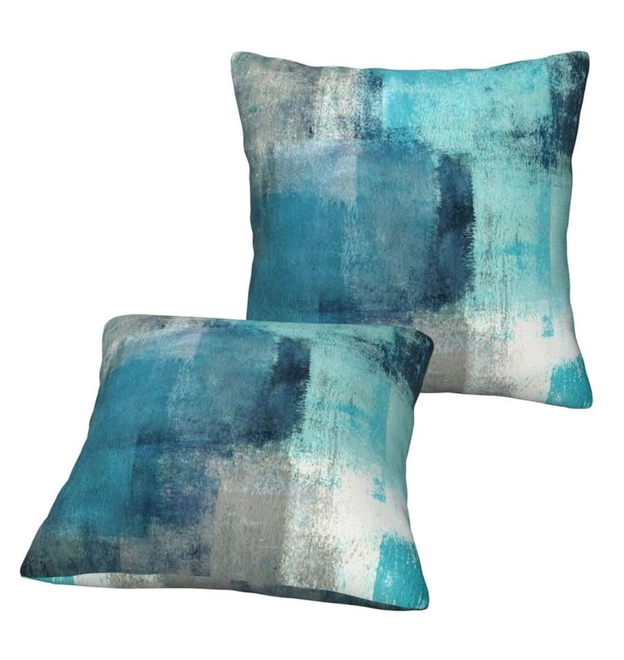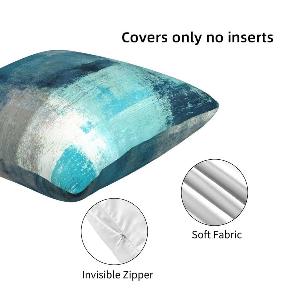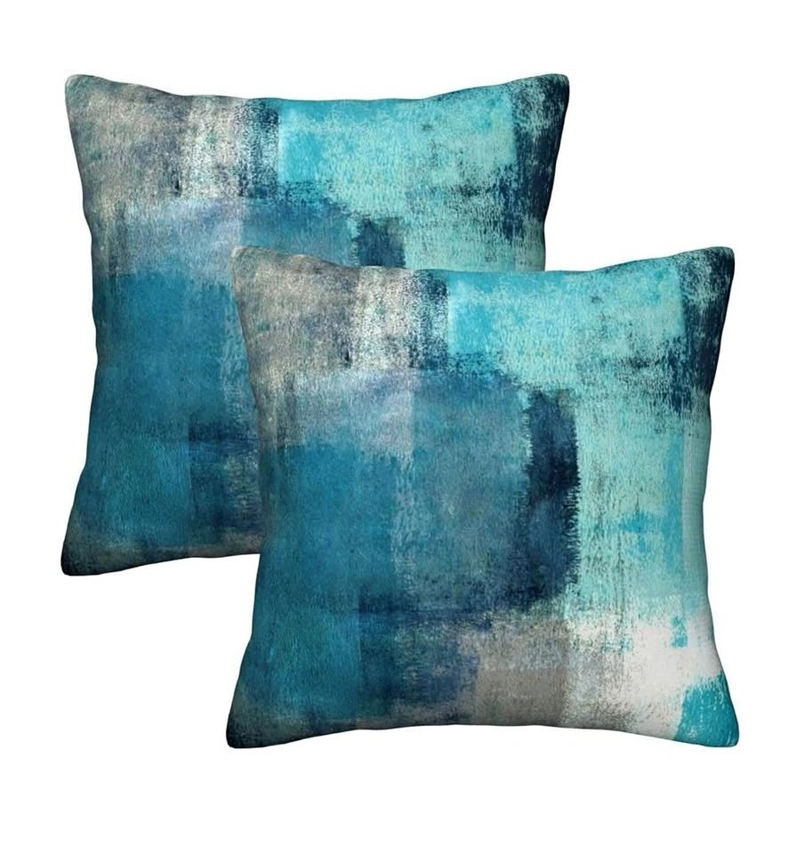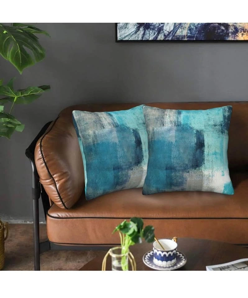 Teal Grey Abstract Art Painting Throw Pillow Covers, brand new