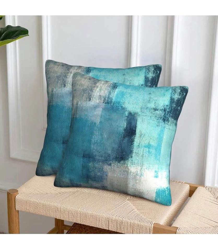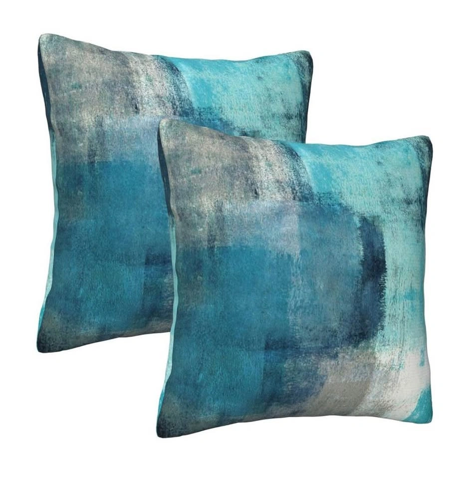Teal Grey Abstract Art Painting Throw Pillow Covers Decorative Linen Pillow Cases Set of 2 Square Cushion Cover for Couch Sofa Bedroom Patio 18x18 Inch