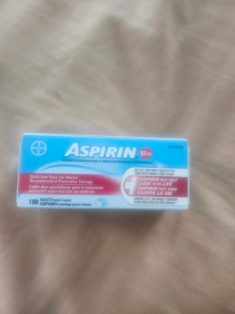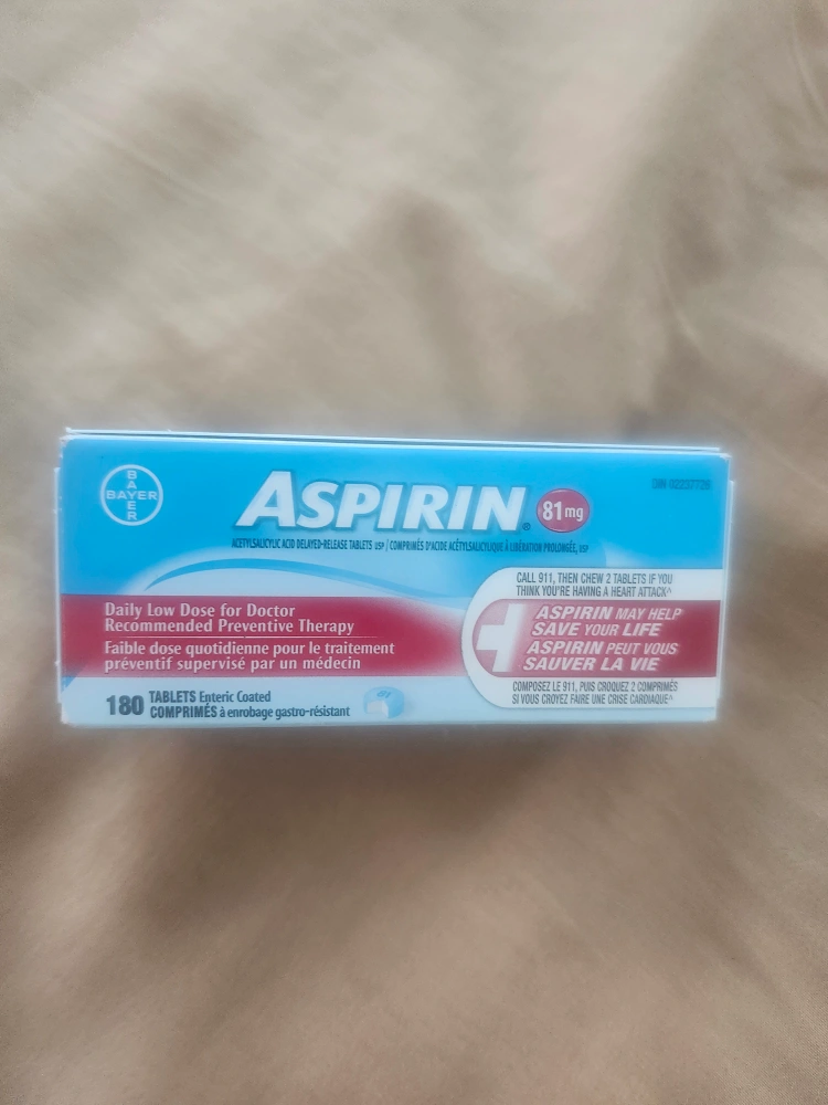 Selling a box of Bayer Aspirin, each tablet containing 81mg. The box contains 180 enteric coated tablets. This is a daily low dose for doctor-recommended preventive therapy. Please consult a doctor before use .I can give the expiration if interested. it's never open