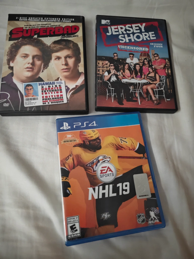 Superbad DVD, Jersey Shore Season 4, NHL 19 PS4