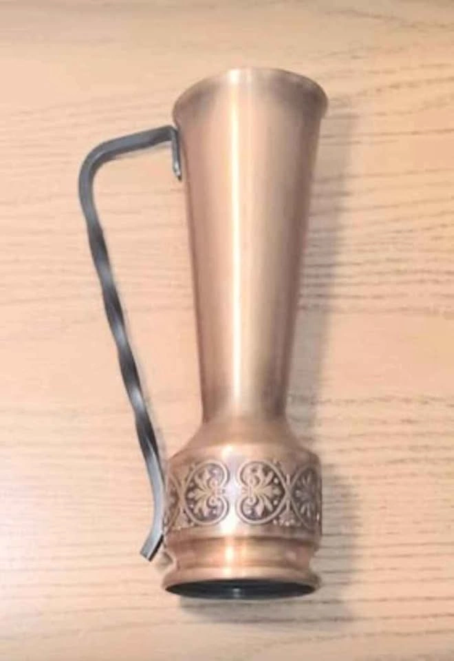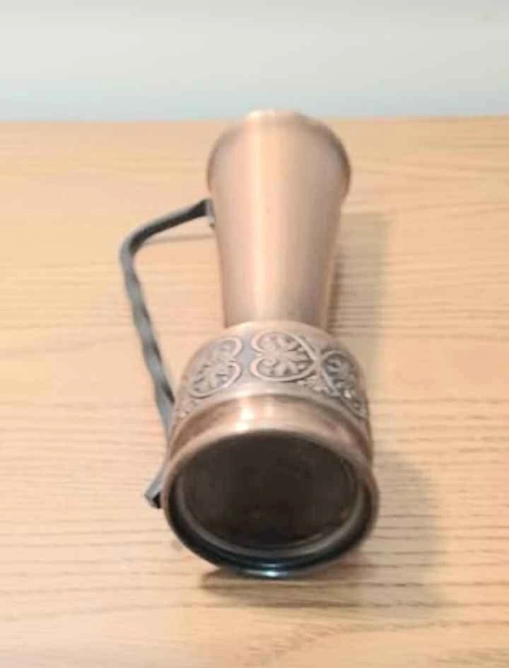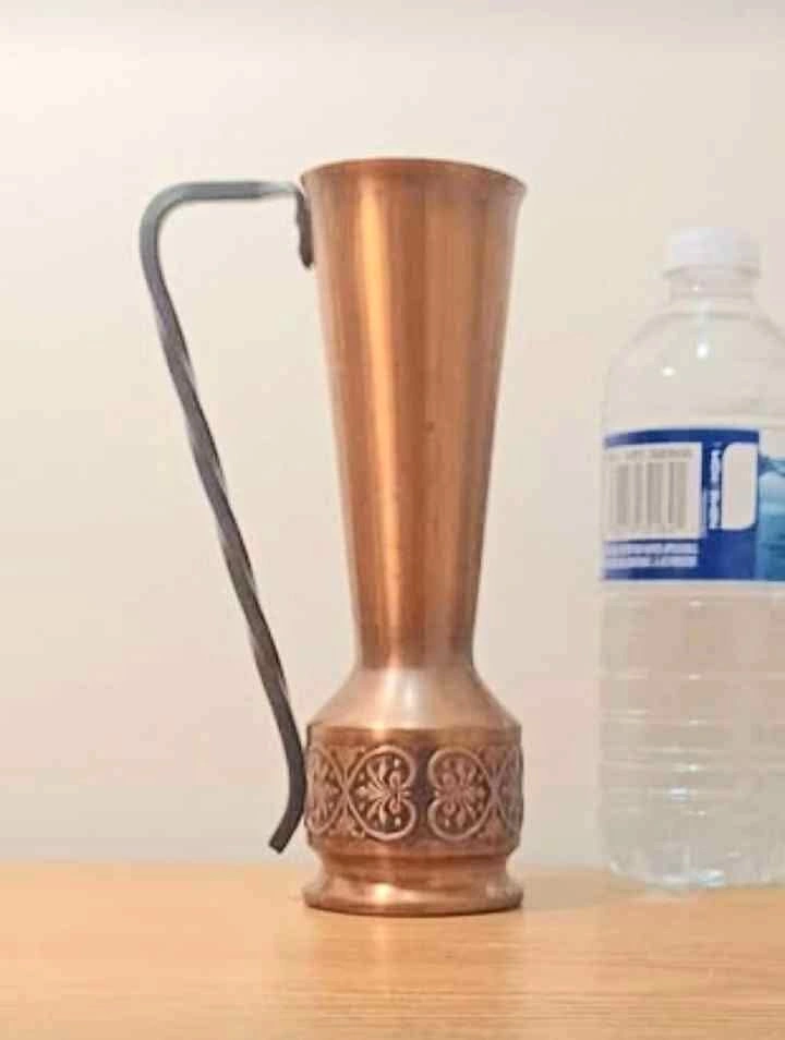 65Vintage, rare, household German embossed copper pitcher vase with forged iron handle. Decorative, household. Very good condition. Please check out my other rare items!