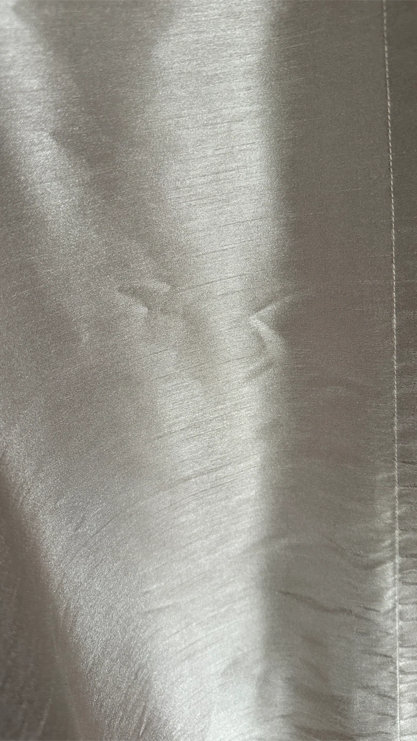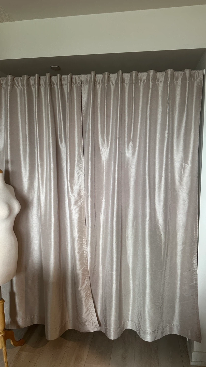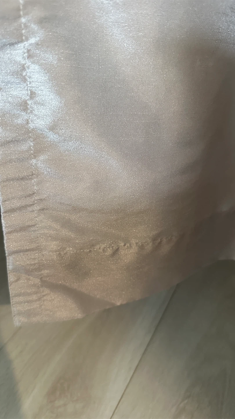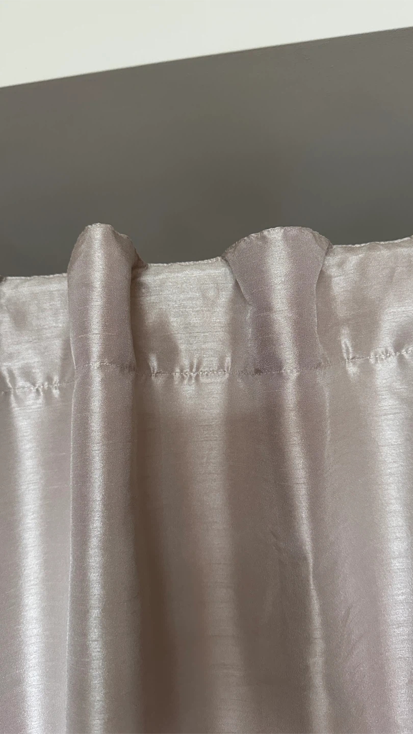 Champagne-coloured curtain panel, perfect for adding a touch of elegance to any room! The material has a subtle sheen that catches the light beautifully. It's in great condition and ready to hang in your home.