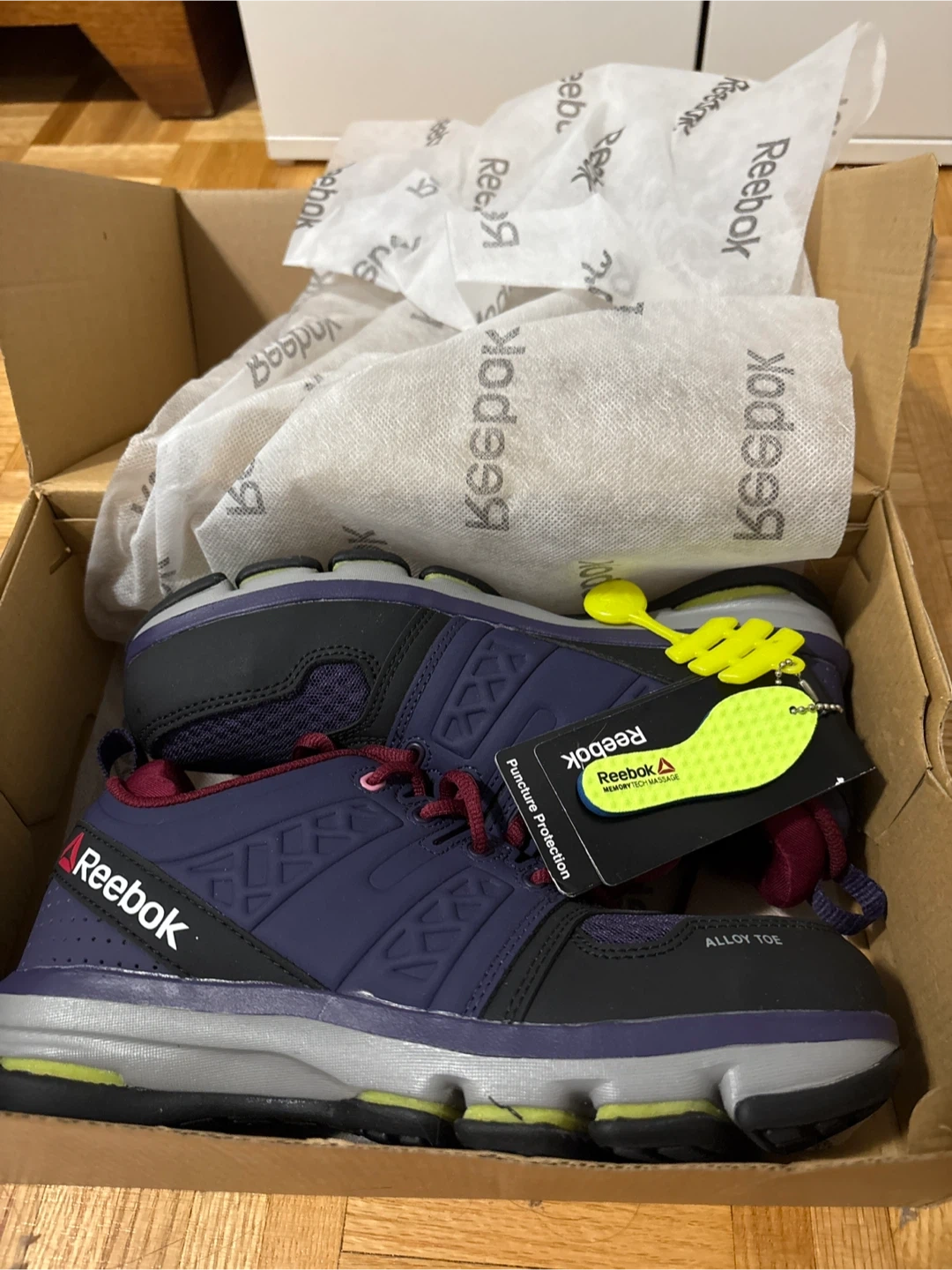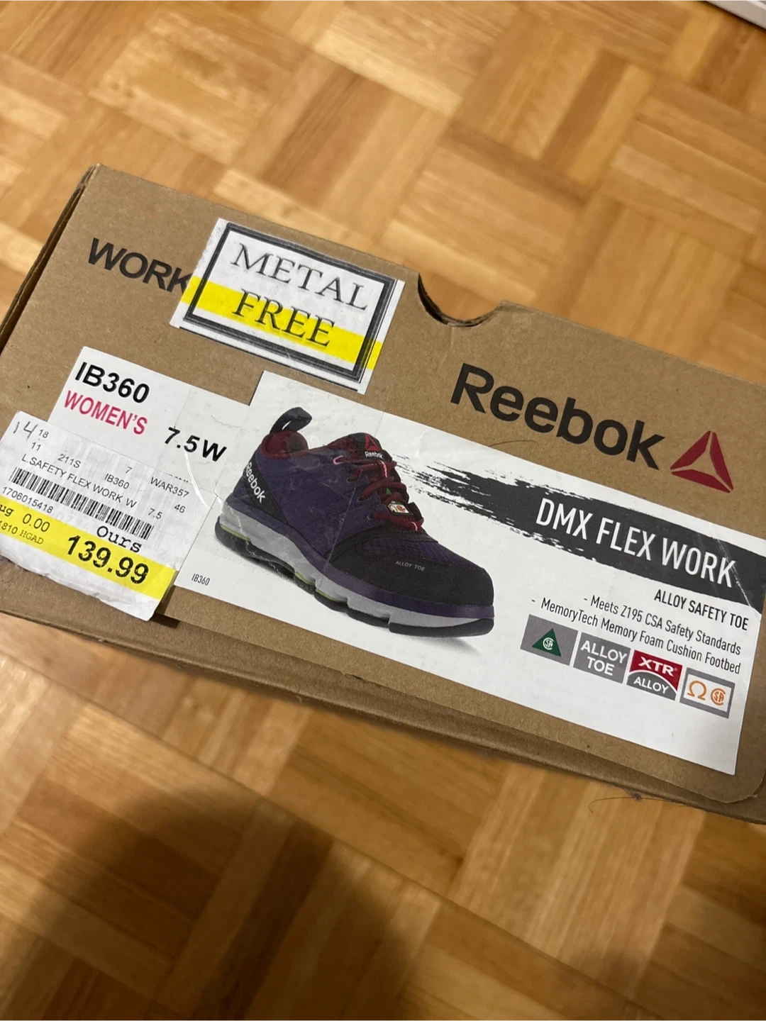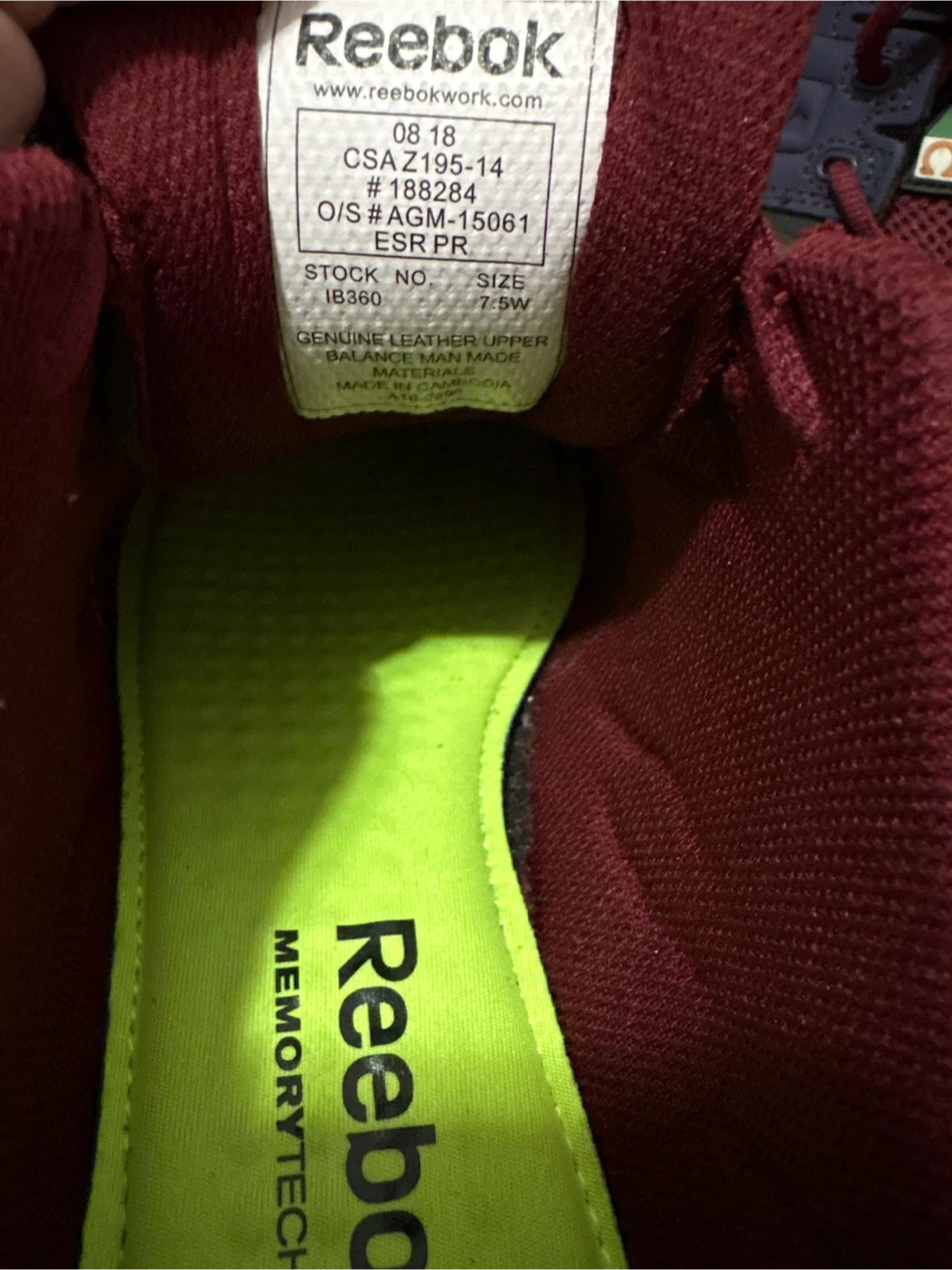 90For Sale: Reebok Work Shoes (Model CSAZ195-14) – Size 7.5 Stay comfortable and protected on the job with these Reebok work shoes. • Size: 7.5 • Model: CSAZ195-14 • Features: MemoryTech insoles for all-day comfort, genuine leather upper, and alloy safety toe for reliable protection. Perfect for work environments where safety and comfort matter.