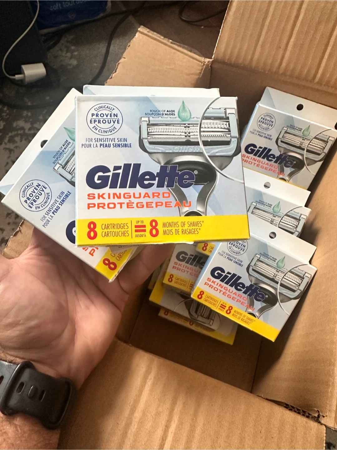 I have several packs of Gillette SkinGuard cartridges for sale. Each pack contains 8 cartridges. They fit all Gillette SkinGuard, ProGlide, Fusion ProShield, and Fusion razors. The boxes are unopened, sealed, new.